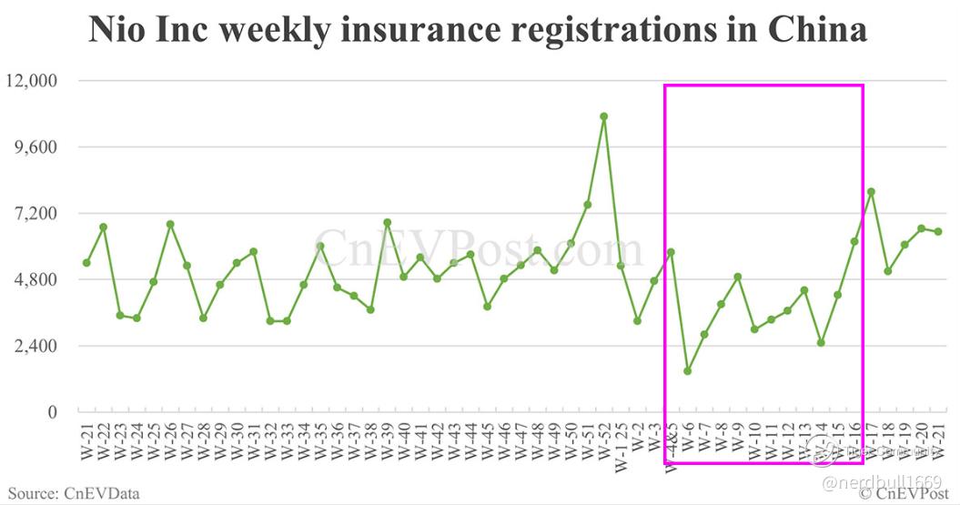 Nio Inc, which includes the Nio, Onvo and Firefly brands, had 6,530 insurance registrations in China last week, down 1.80 percent from the previous week.