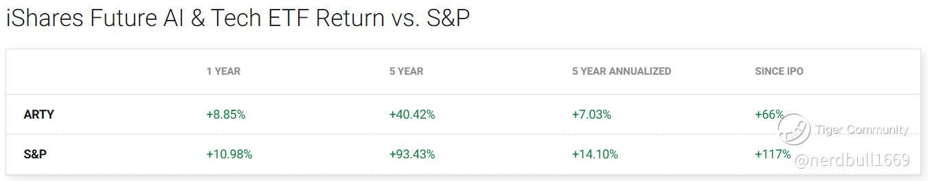 The performance of ARTY vs $S&P 500(.SPX)$ as follows, where 1-year returns are positive (e.g., +8.85% as of late May 2025).