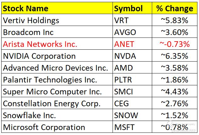 Arista Networks: Critical for high-speed networking within AI data centers.