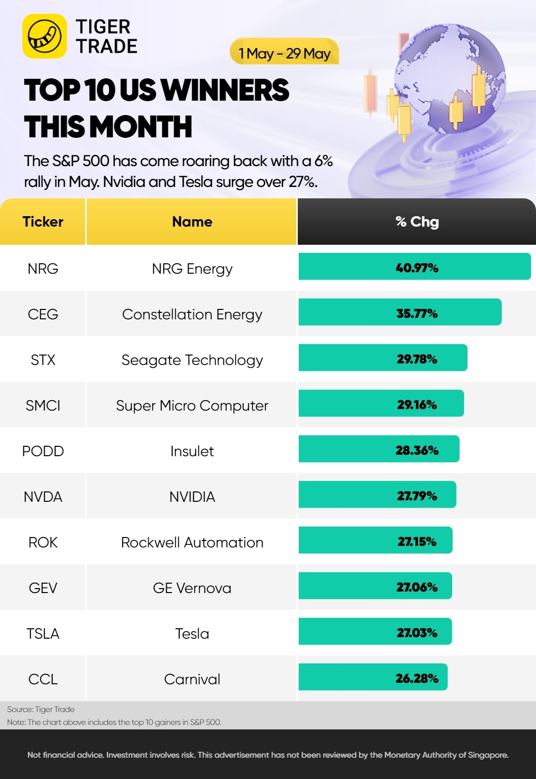 As of May 29, $S&P 500(.SPX)$ has risen 6.16% this month, marking its best monthly gain of the year.