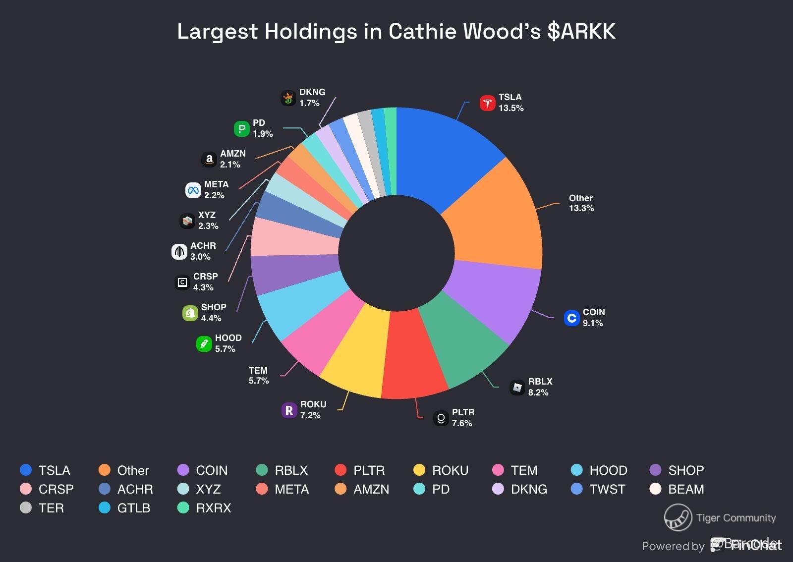 This bifurcation is visible in Cathie Woodβs ARKK allocation strategy. As of the latest FinChat data: