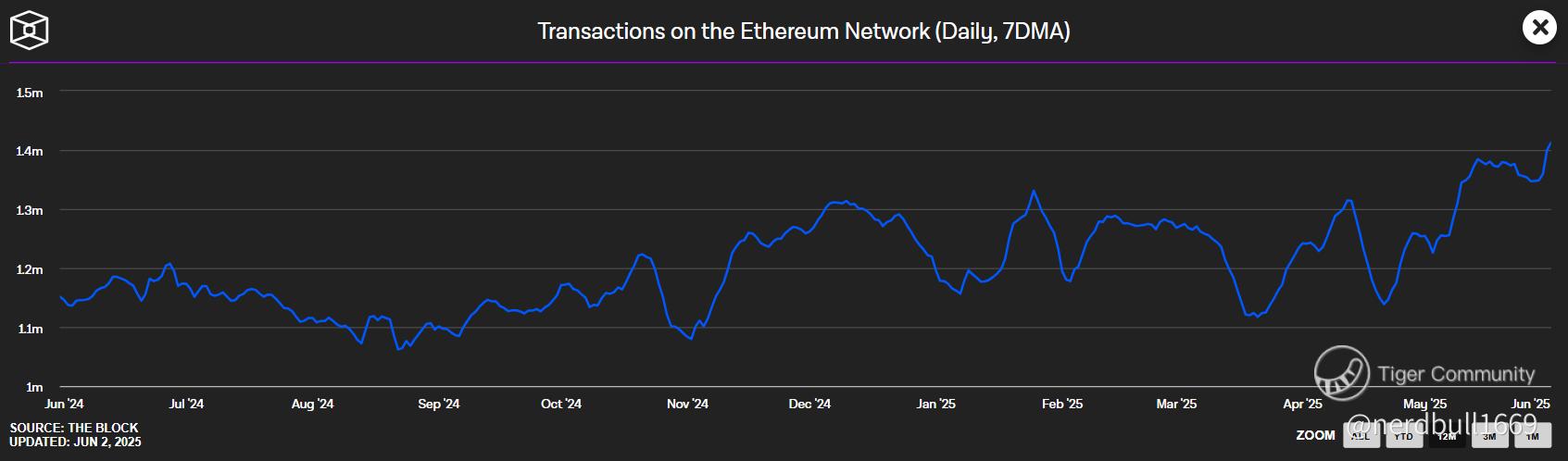 Increased Daily Transaction Volumes: Ethereum's daily transaction volumes hit a yearly record in late May, indicating increased network activity.