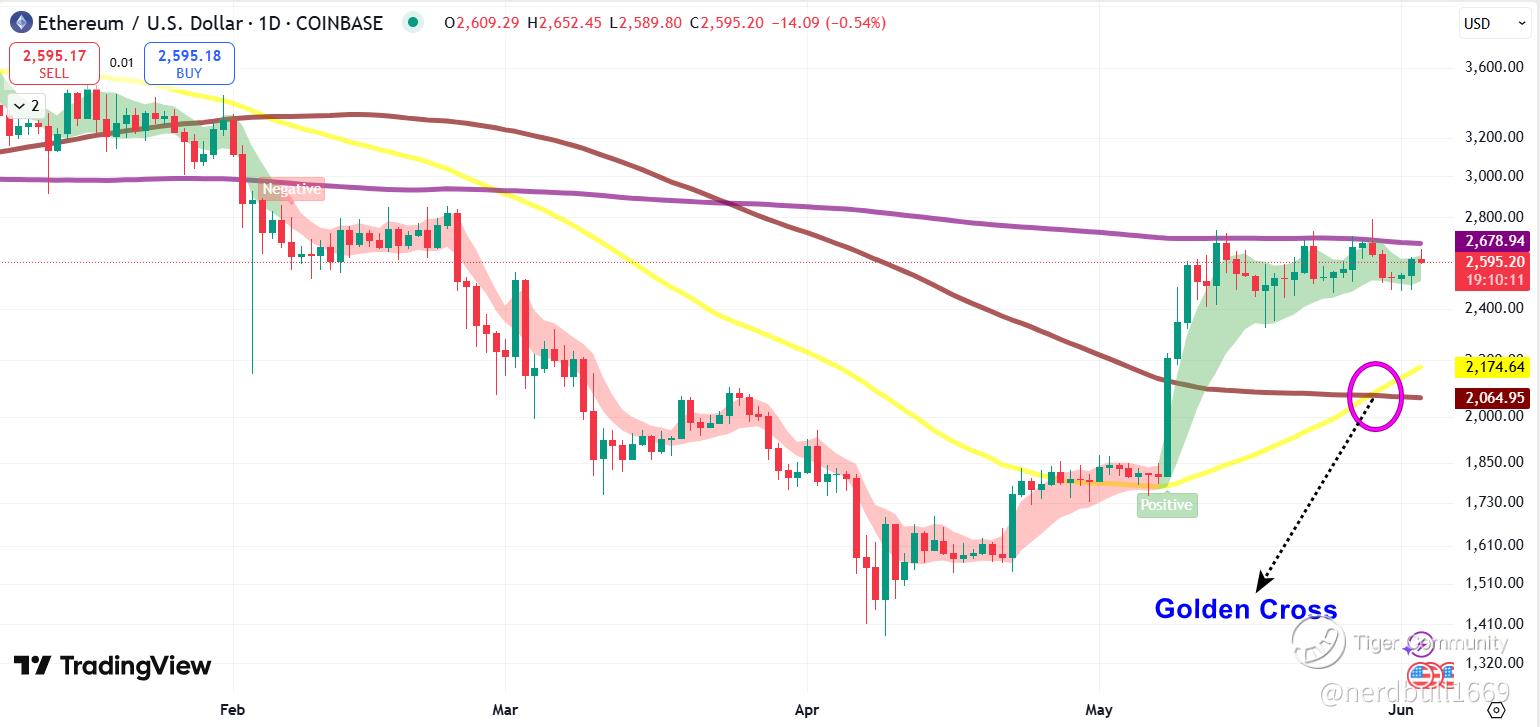 Recent Price Action: Several sources indicate that ETH's price action since February (and possibly extending into May) has formed a "cup" with a rounding bottom, followed by a "handle" consolidating at higher levels.