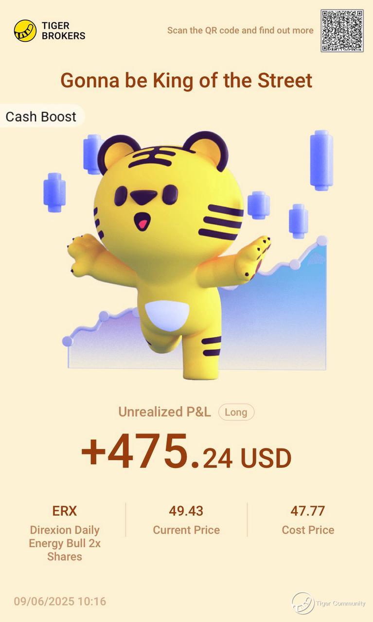 $Direxion Daily Energy Bull 2x Shares(ERX)$ I made some money from Cash Boost Account again, that’s great, let’s celebrate with champagne tonight.