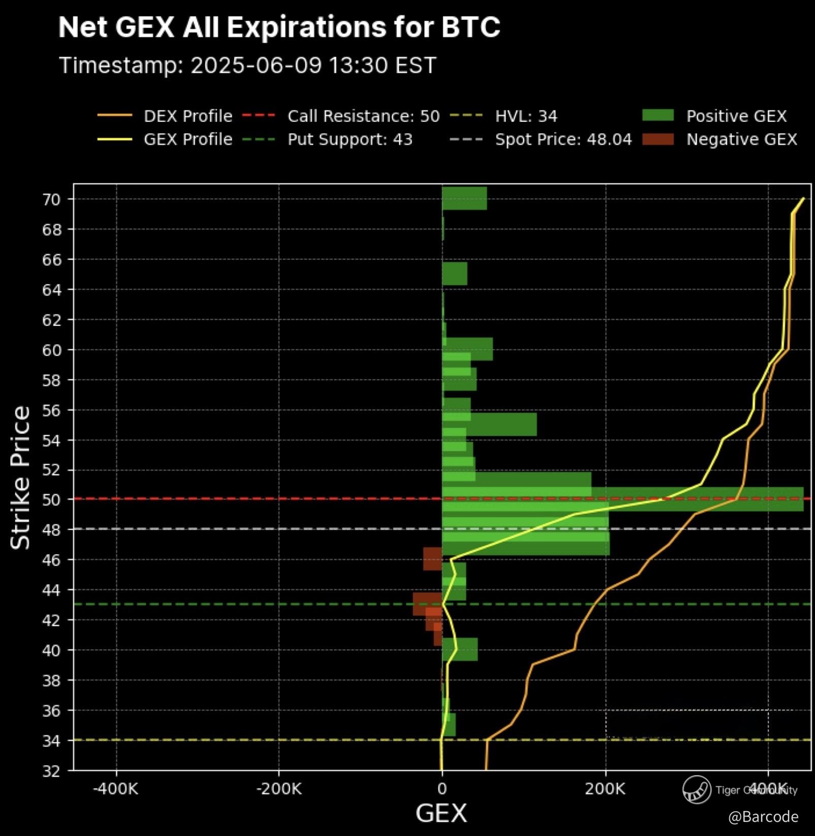 $MSTR doesn’t move in isolation, it’s tethered to Bitcoin, amplifying its price action with leverage. BTC futures are trading at $108,900, just 1% shy of the $110,000 call wall, a level where gamma dynamics could ignite. The $107,500 gamma wall acts as near-term support, bolstered by heavy put clusters at $100,000 to $102,500. If BTC punches through $110,000, dealer hedging could cascade into a $115,000-plus blow-off, dragging $MSTR along for the ride.