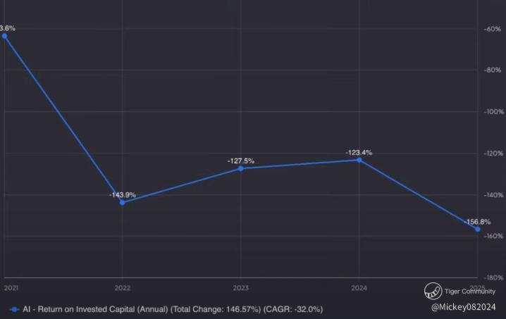 C3.ai’s ROIC is not just weak — it’s alarmingly negative and deteriorating:
