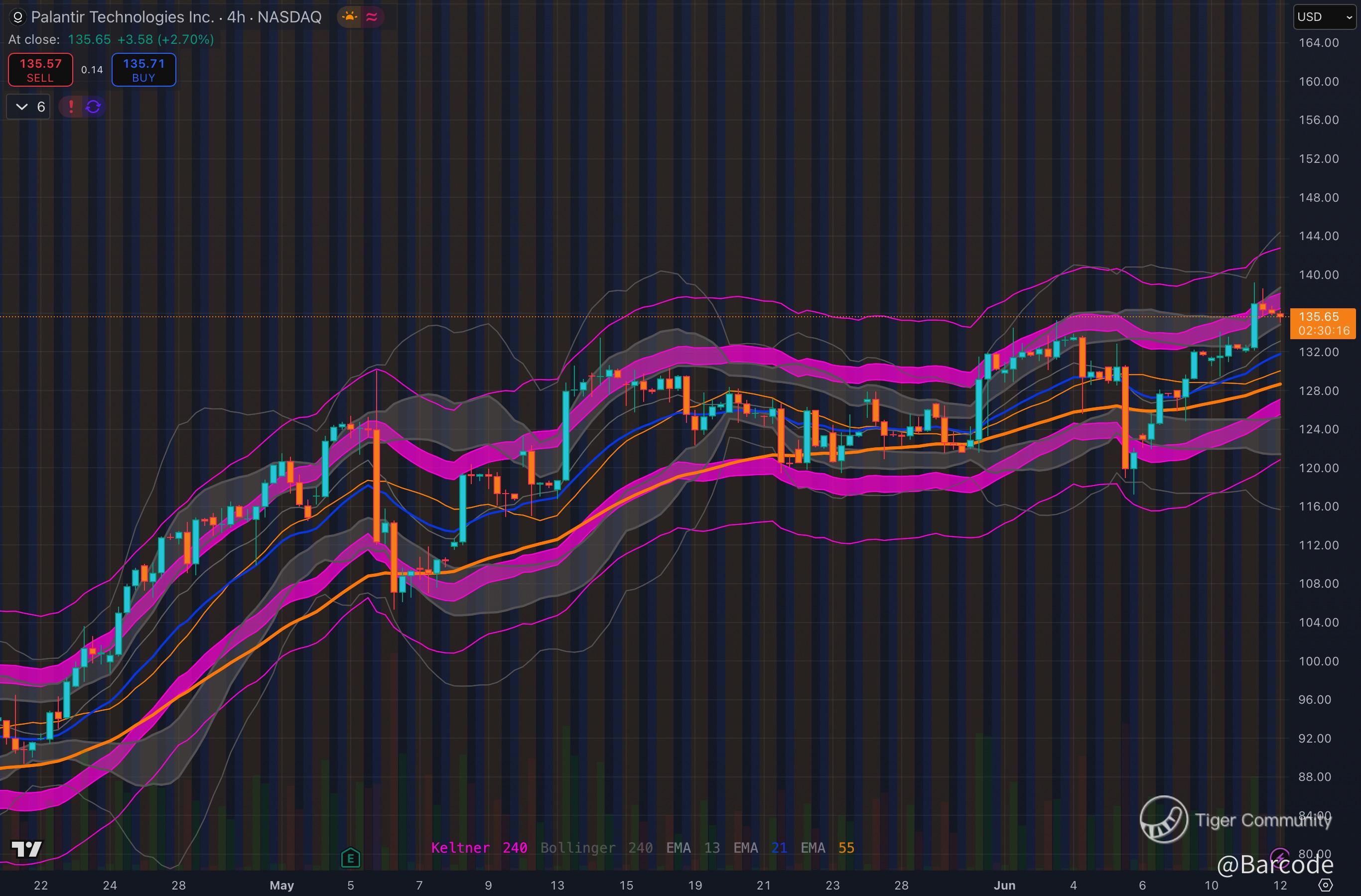 The 21EMA bounce this week validated the swing structure again, much like $TSLA and $UBER’s recent reactions at this same EMA. Keltner and Bollinger Band confluence supports a continuation play if bulls step back in at open.