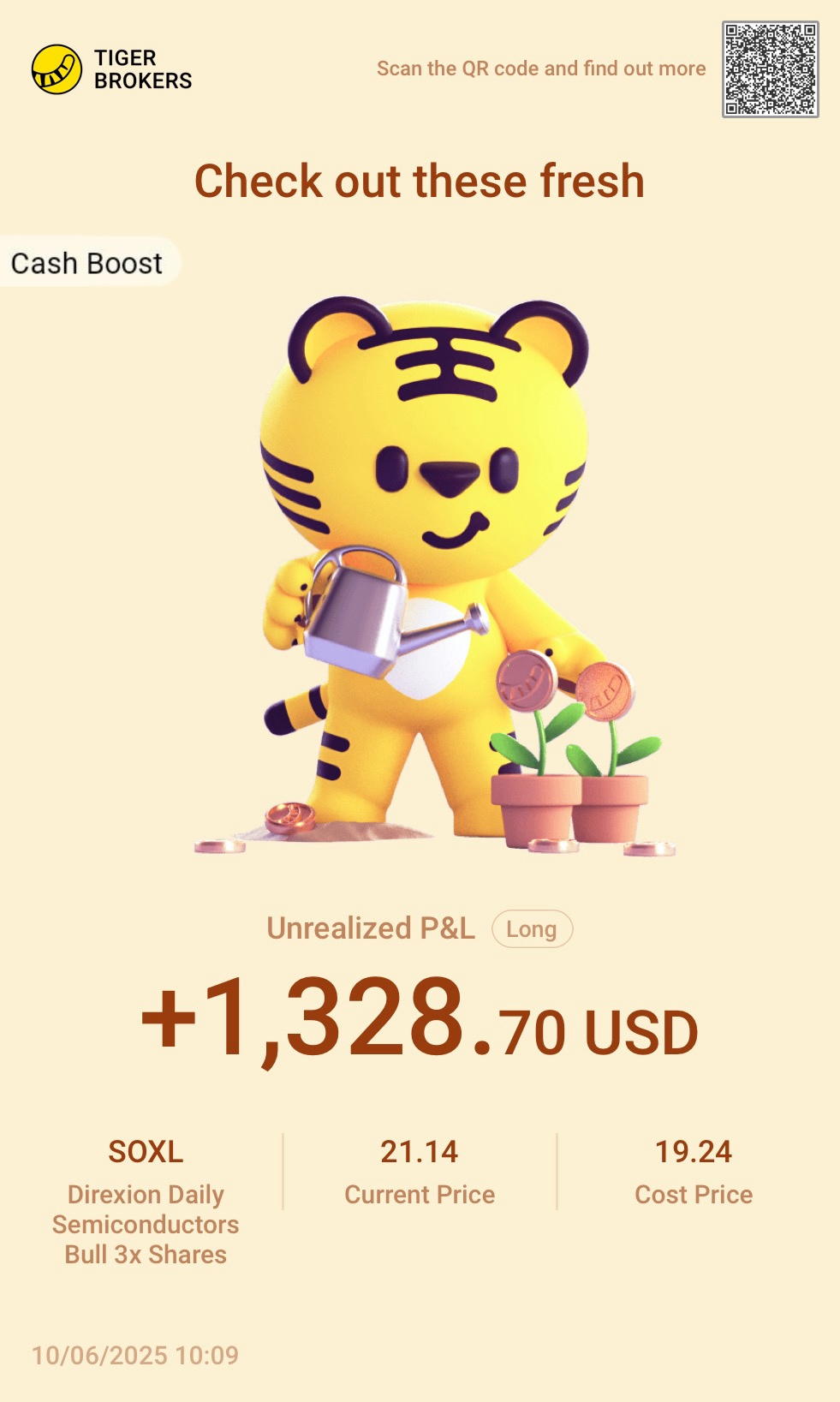 And we are also happy to see @Heartbeat made a profit of $1328 trading $Direxion Daily Semiconductors Bull 3x Shares(SOXL)$ through CBA.