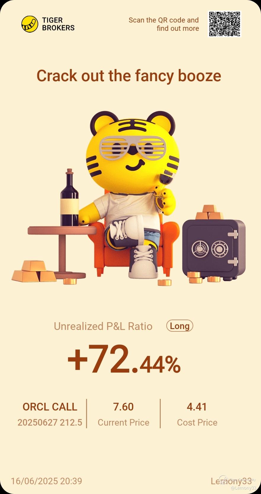 $ORCL 20250627 212.5 CALL$ Make a profit from Oracle's recent strong earnings.