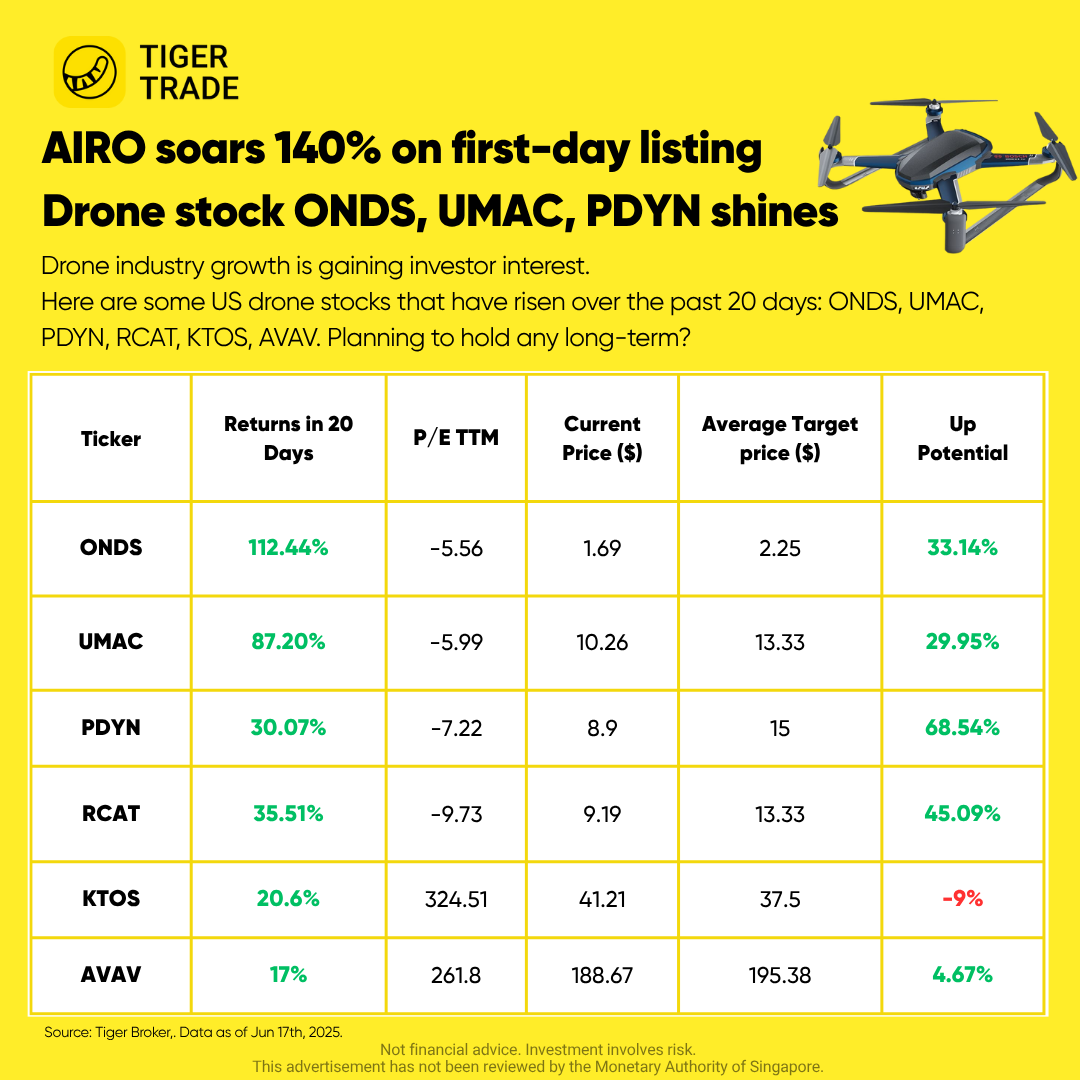 💰Drone Stocks Surge: AIRO Up 140% on Debut; ONDS, UMAC Rising Since June