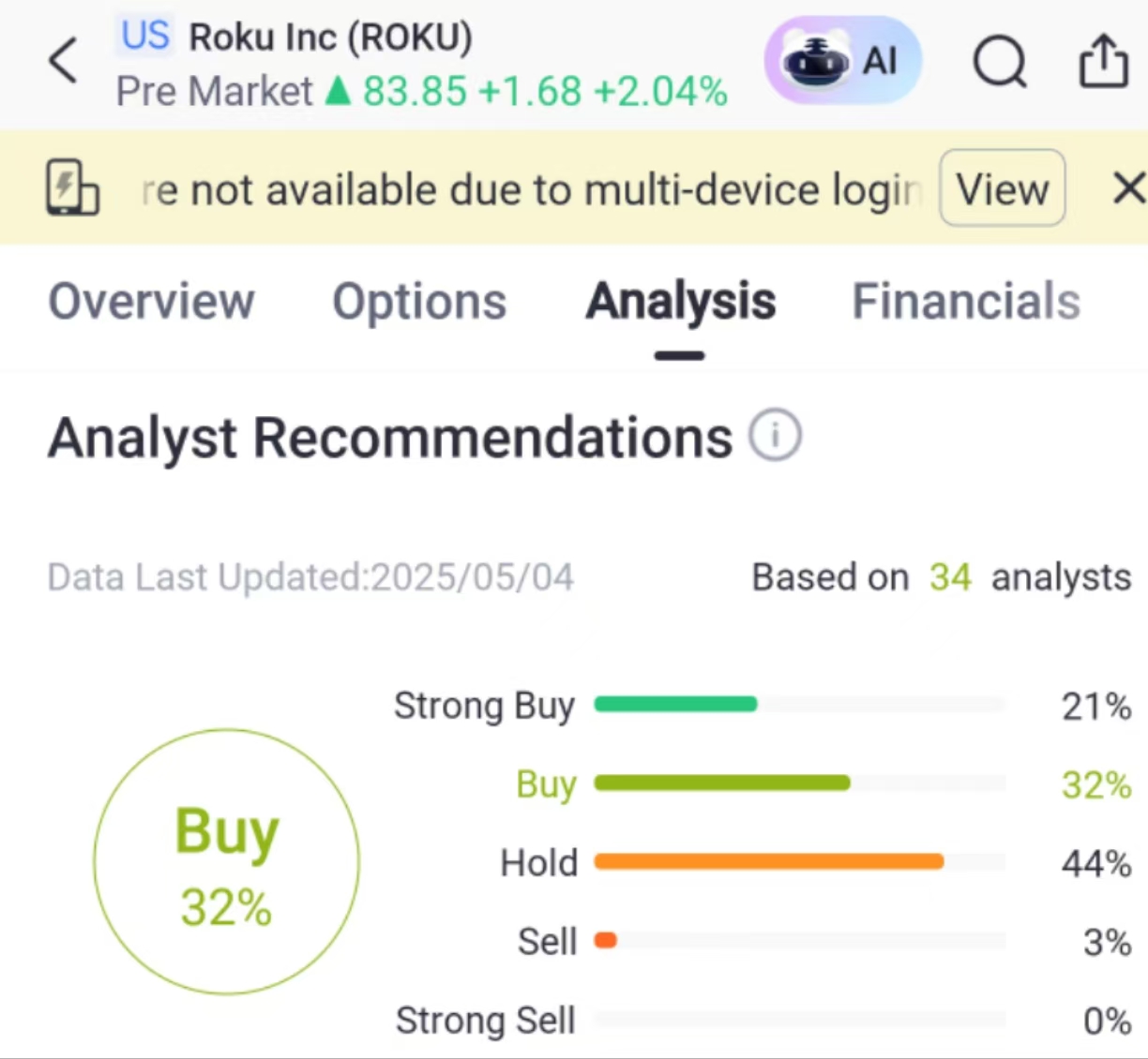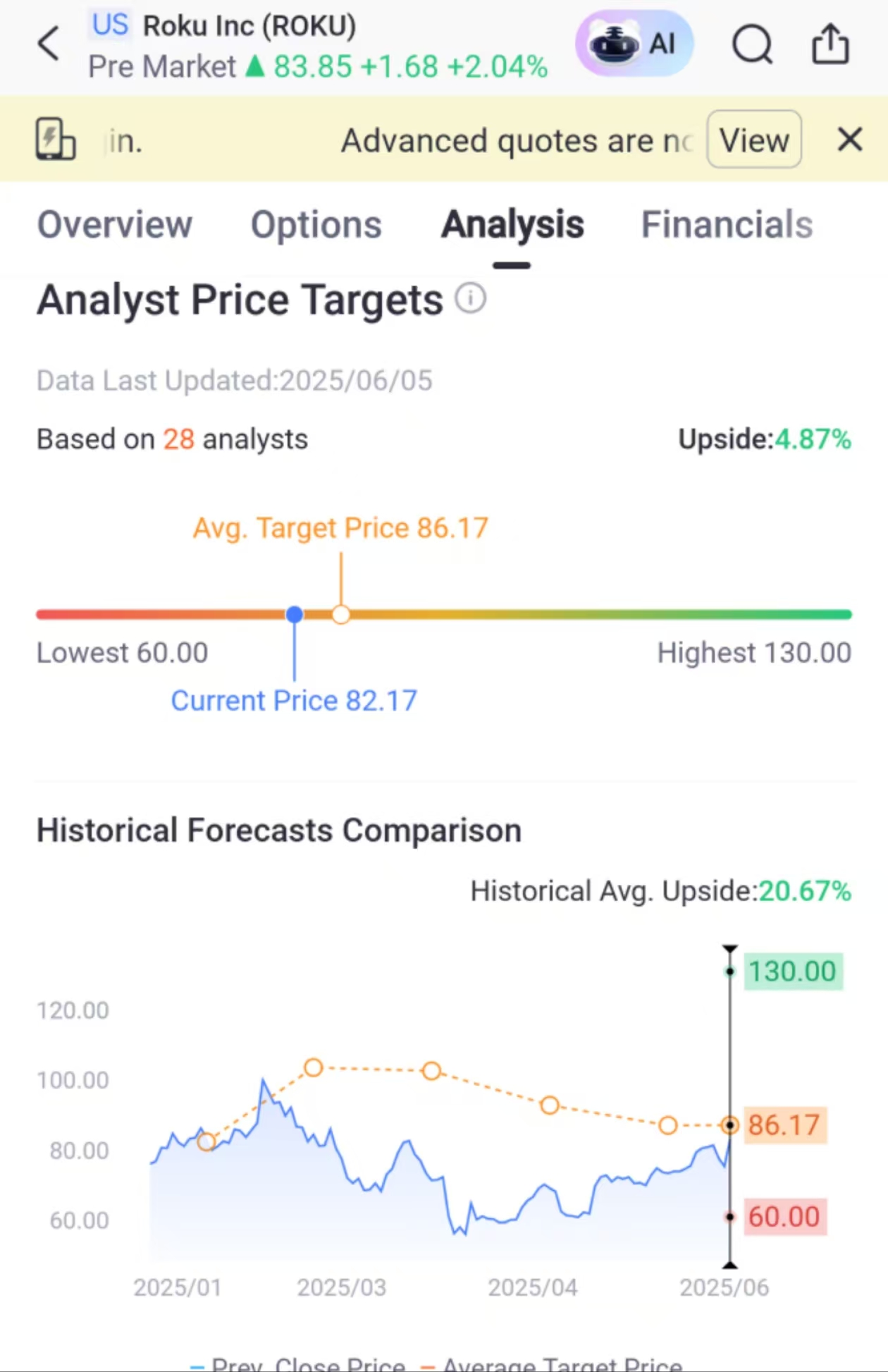 According to the analysis function of the Tiger International APP, analysts' average target price for $Roku Inc(ROKU)$ is expected to be above $86, which means there is less than a 5% upside from the current price.