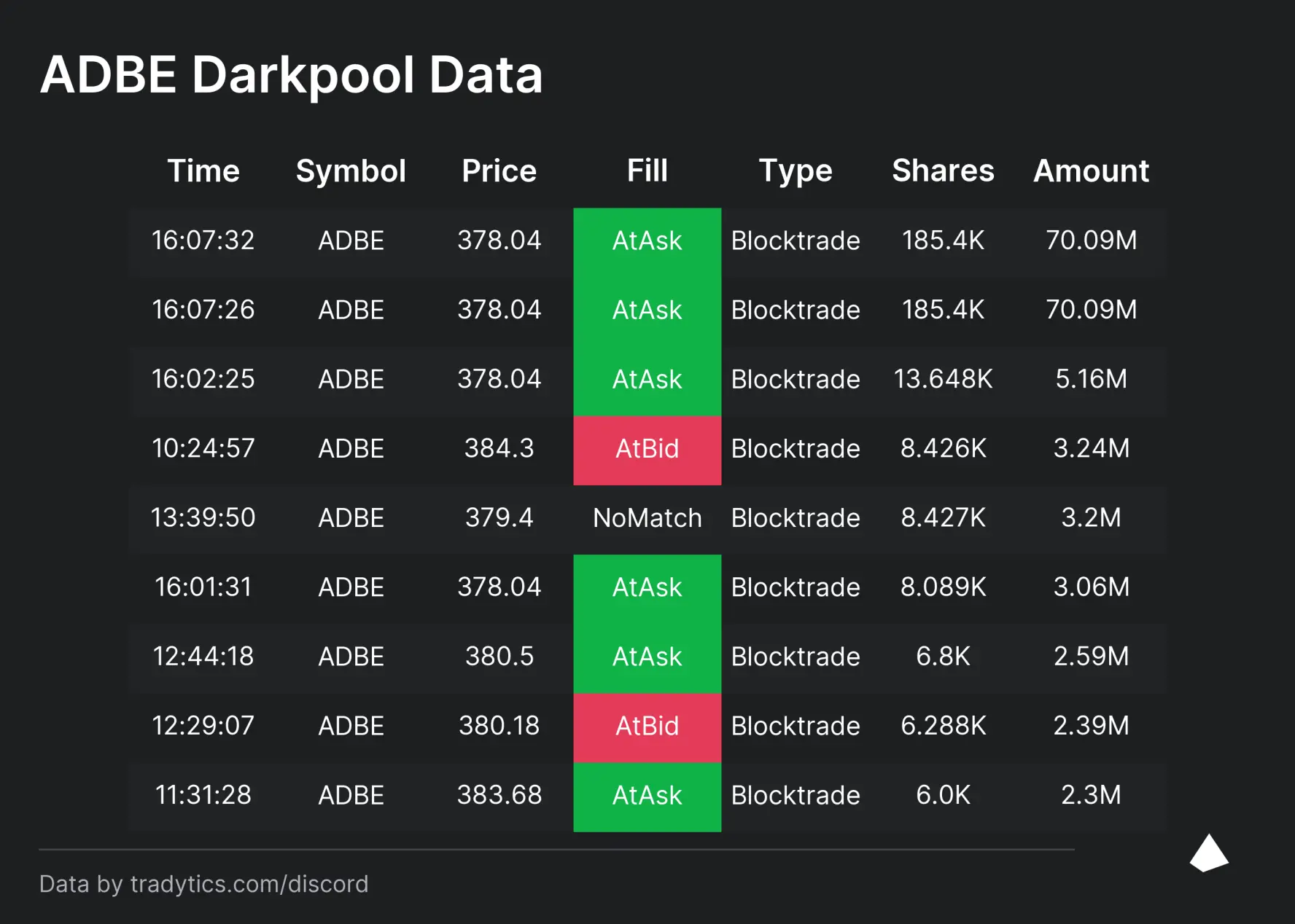 $Adobe(ADBE)$ That dark pool tsunami's making waves like synchronized swimmers at the Olympics. Afternoon charts lit up brighter than a Sydney fireworks show. When whales move in formation, even the sharks start taking notes – reminds me of the $GameStop(GME)$ glory days.