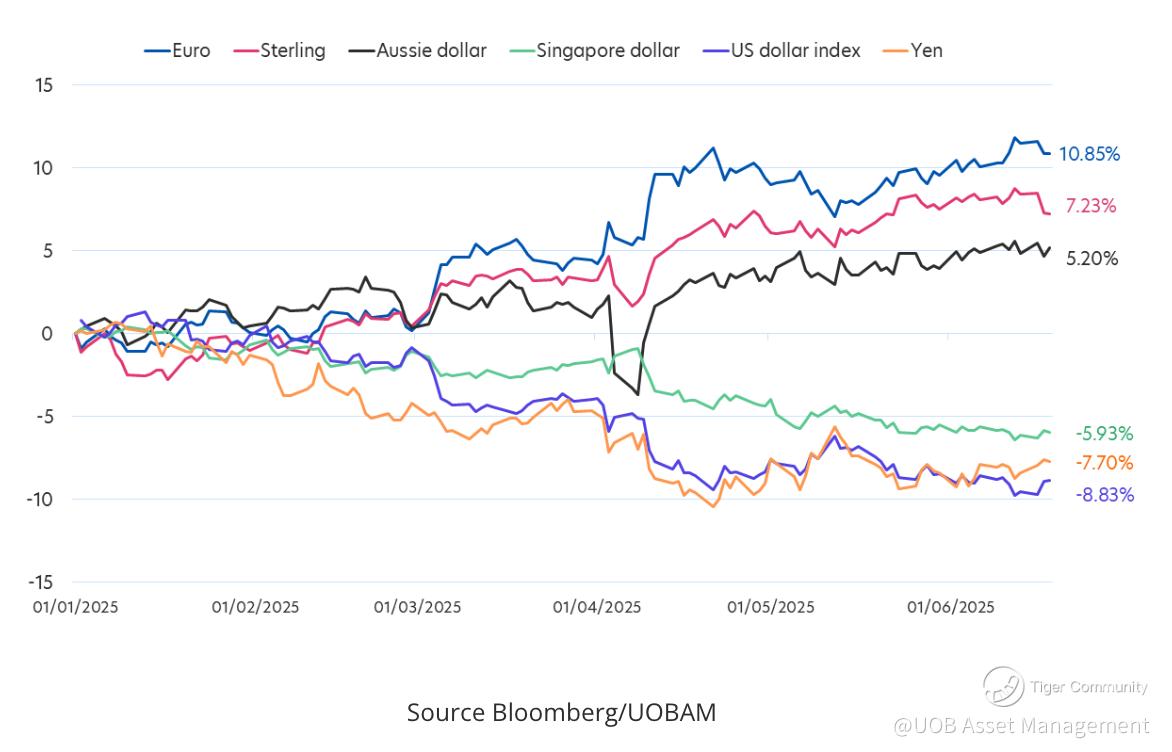 The USD’s free-fall mode since the start of 2025, despite real rate differentials against the DXY basket moving sideways, suggests an unwinding of the US exceptionalism narrative. Haphazard US policies, especially on the trade front, has resulted in lower foreign demand for USD-denominated assets.