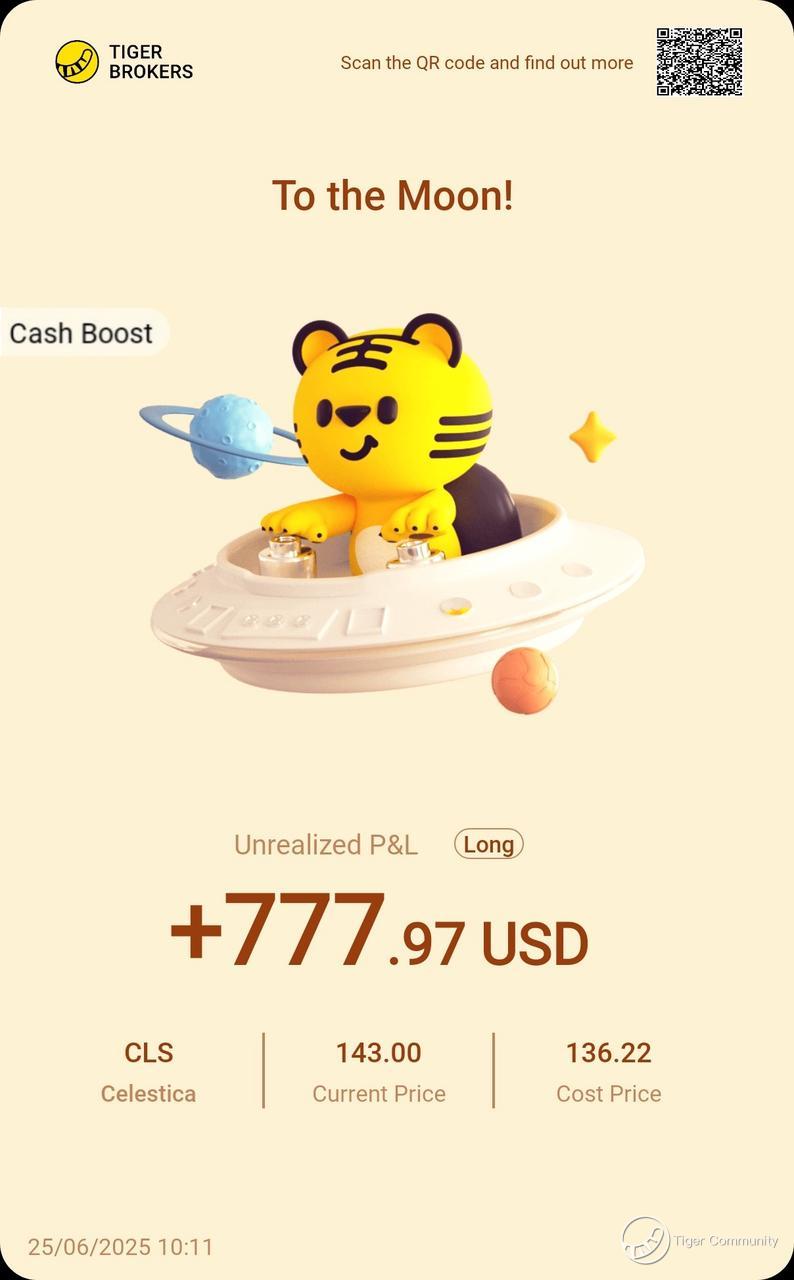 $Celestica(CLS)$ is soaring! With $777.97 unrealized gains and current price at $143 surpassing my $136.22 entry, this tech hardware play proves its worth. In investing, choosing the right runway matters more than speed alone!