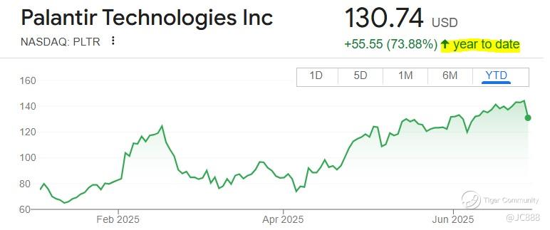 As of Fri, 27 Jun 2025, $Palantir Technologies Inc.(PLTR)$ has soared +73.88% YTD. (see below)