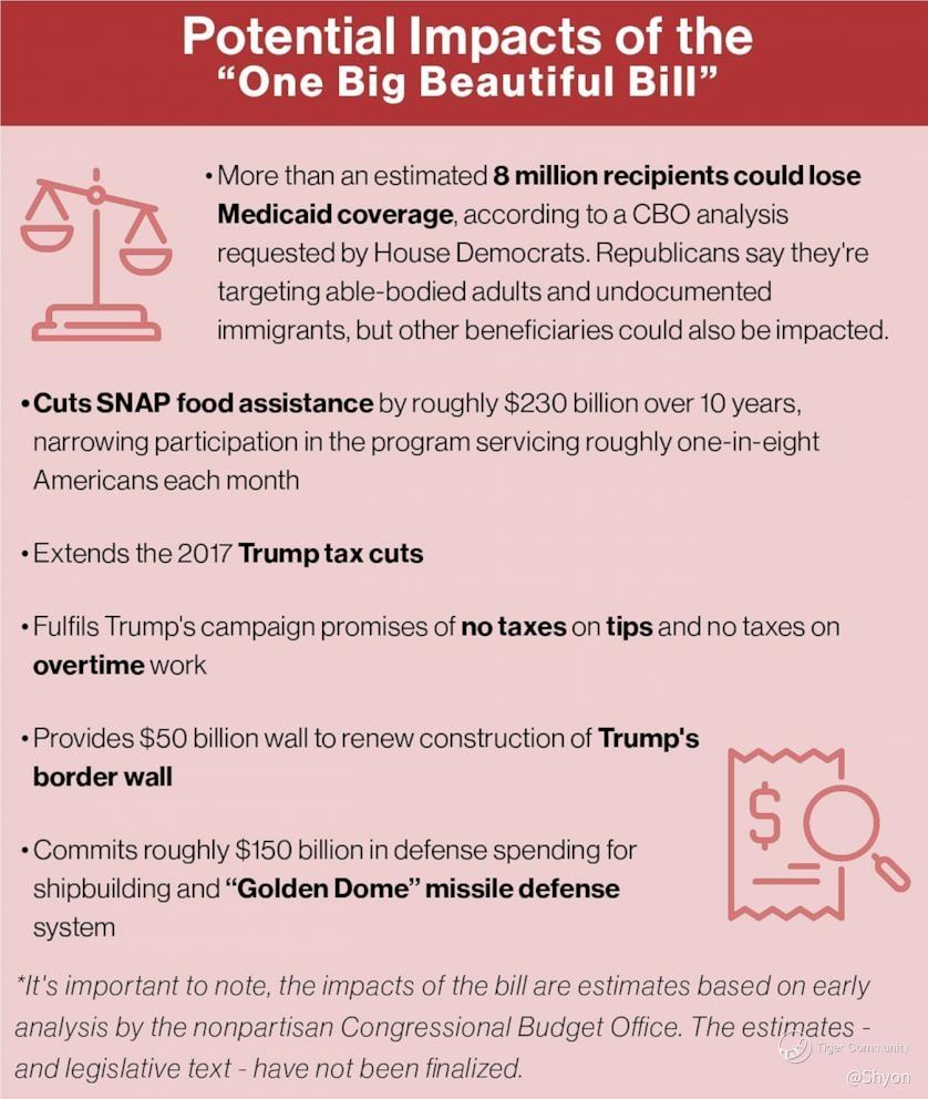2. The International Monetary Fund (IMF) warned that the bill contradicts its fiscal recommendations and urged Washington to start cutting deficits to stabilize debt levels. It plans to assess the bill's impact before updating global growth forecasts in July.