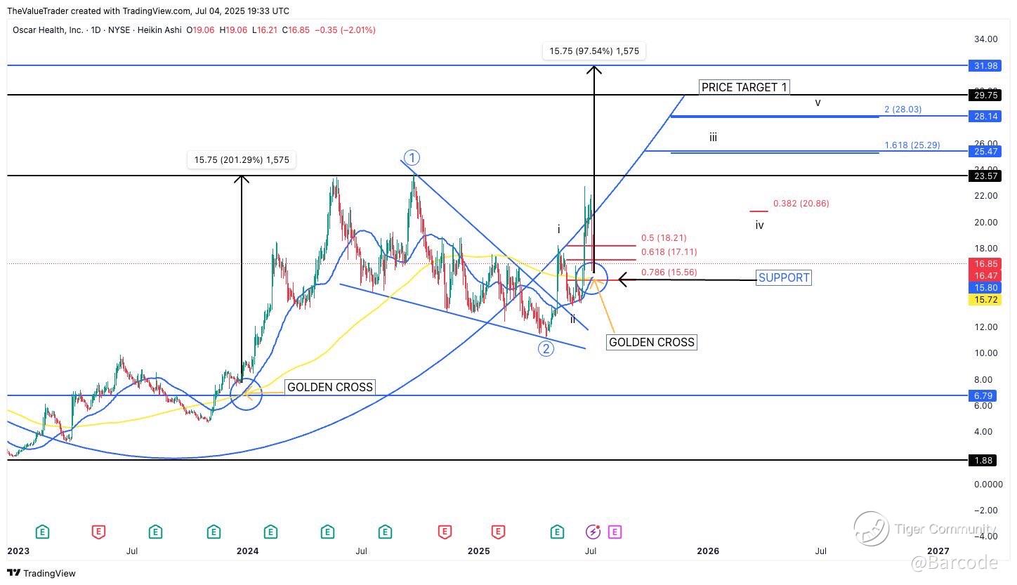 🔴 OSCR: “Reduce,” with a $16.58 average analyst target; price recently retested and stabilised around this level