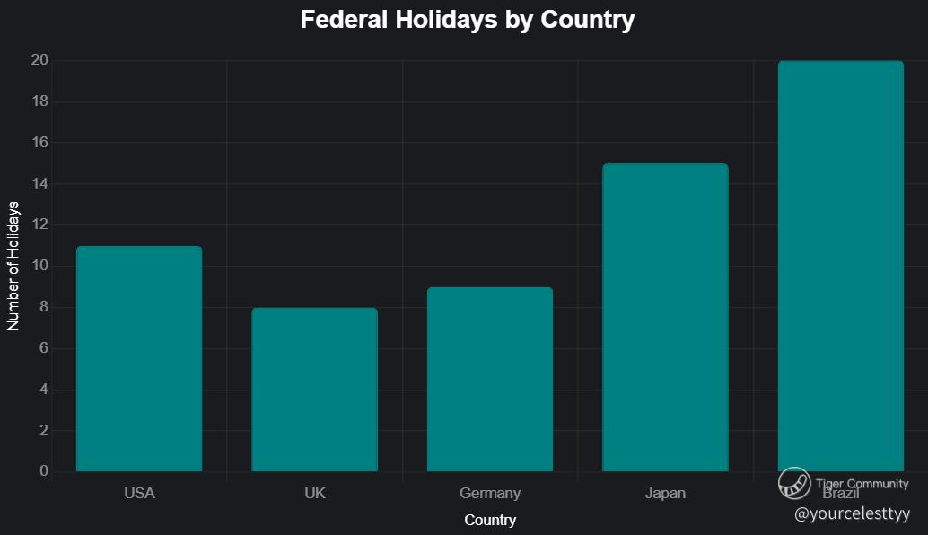 Curious how the U.S. stacks up? Here’s a quick bar chart you can run to compare federal holidays across countries: