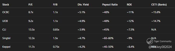 $ocbc bank(O39.SI)$ $UOB(U11.SI)$ $CapitaLandInvest(9CI.SI)$ $Singtel(Z74.SI)$ $Keppel(BN4.SI)$