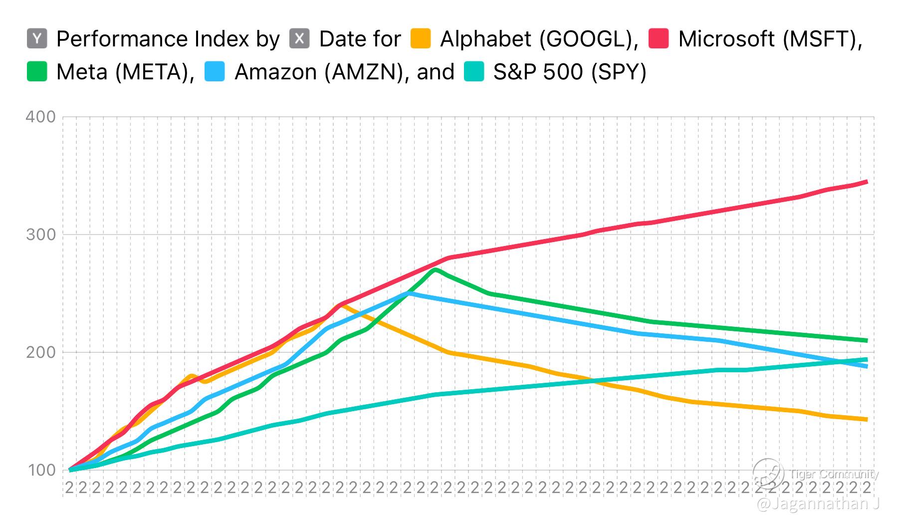 • Leaders: Microsoft (+11–12 %) and Meta (+19–21 %) are the strongest YTD performers among the group.