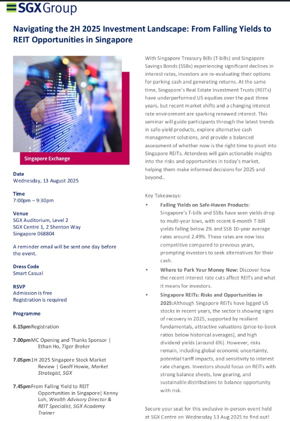 SGX In-Person Seminar:Navigating Singapore REIT Opportunities in 2H 2025