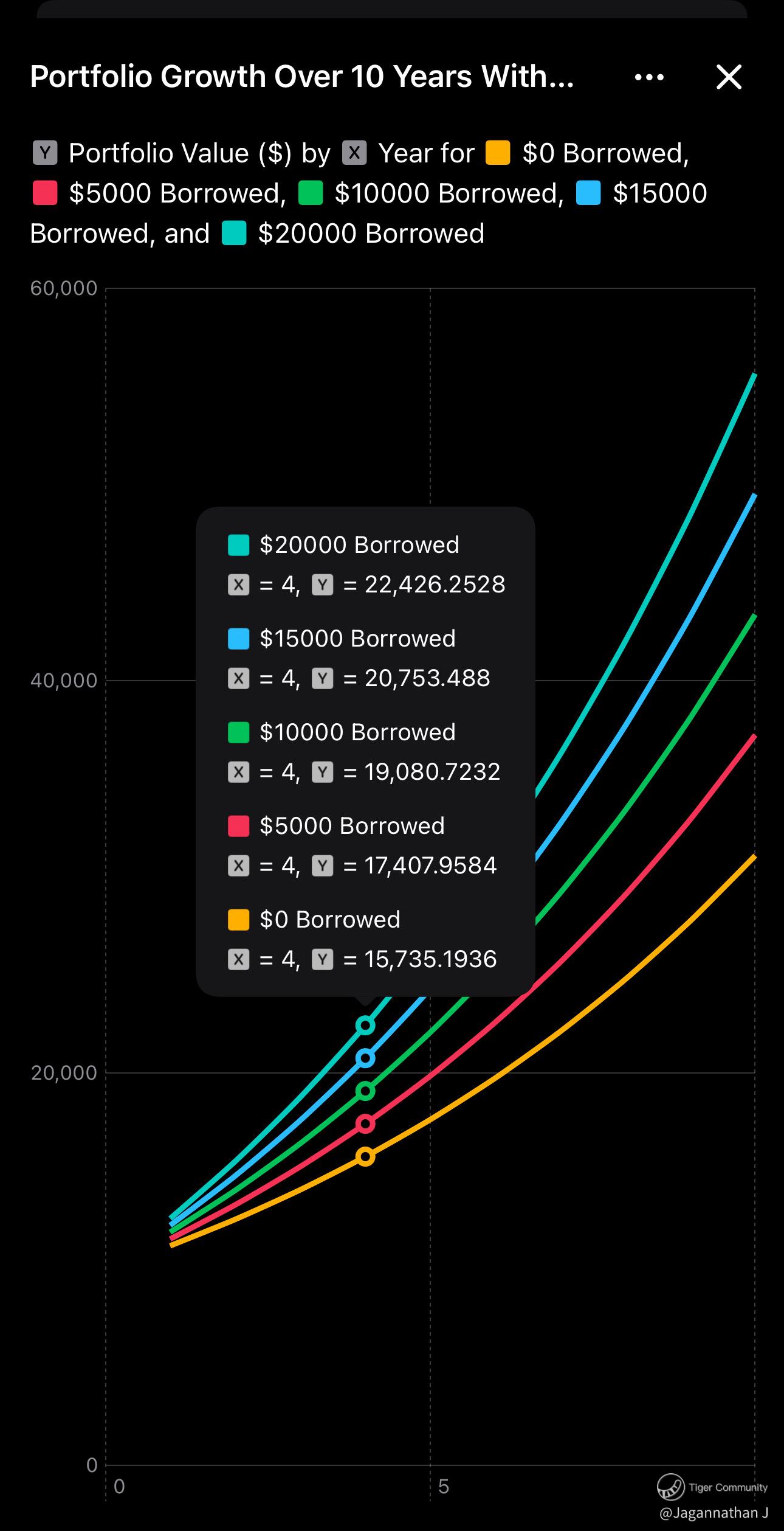🖼️ [Insert chart image: Portfolio Value Over 10 Years with Different Leverage Scenarios]