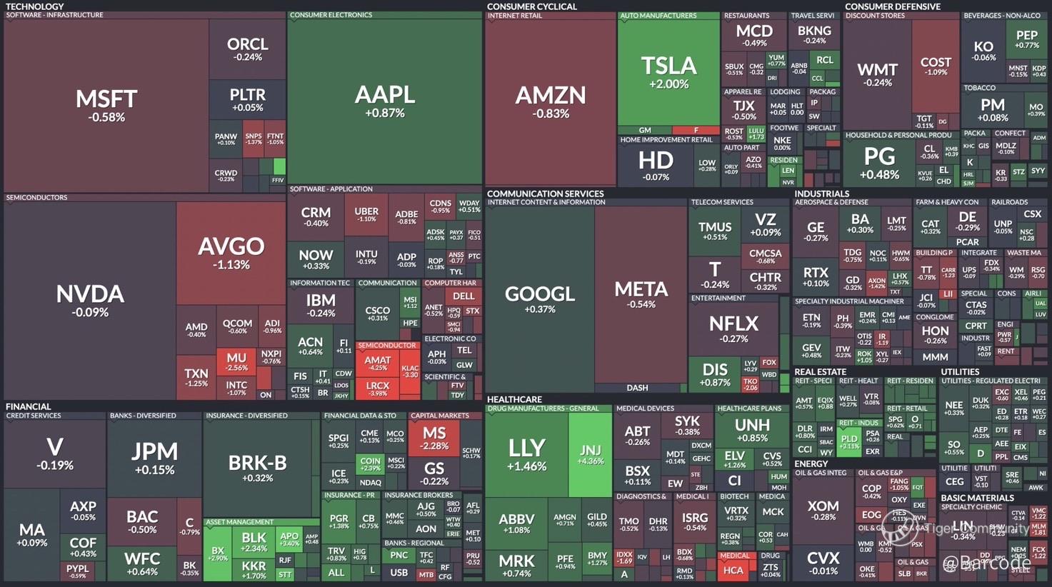 • $LLY +1.46% and $JNJ +4.63% injected energy into healthcare