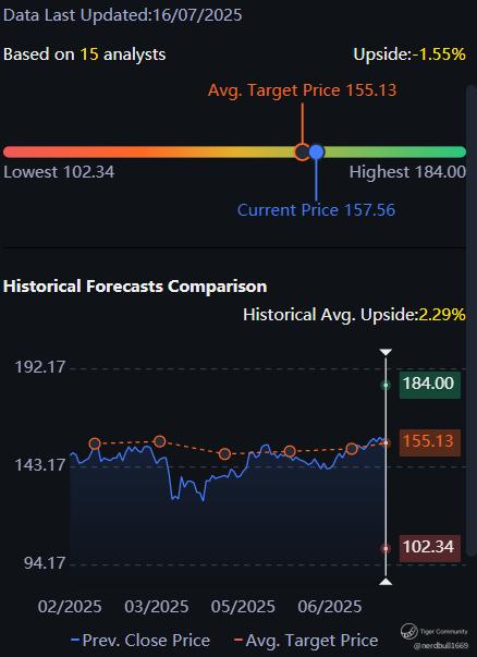 Based on 15 analysts from Tiger Brokers offering 12 month price targets for 3M in the last 3 months. The average price target is $155.13with a high forecast of $184.00 and a low forecast of $102.34. The average price target represents a -1.55% change from the last price of $157.56.