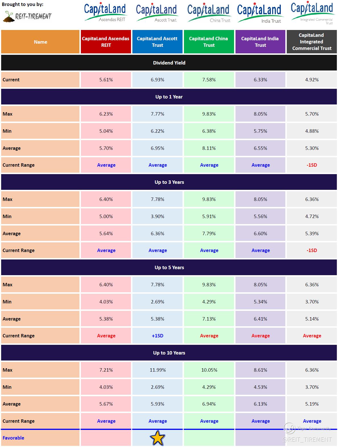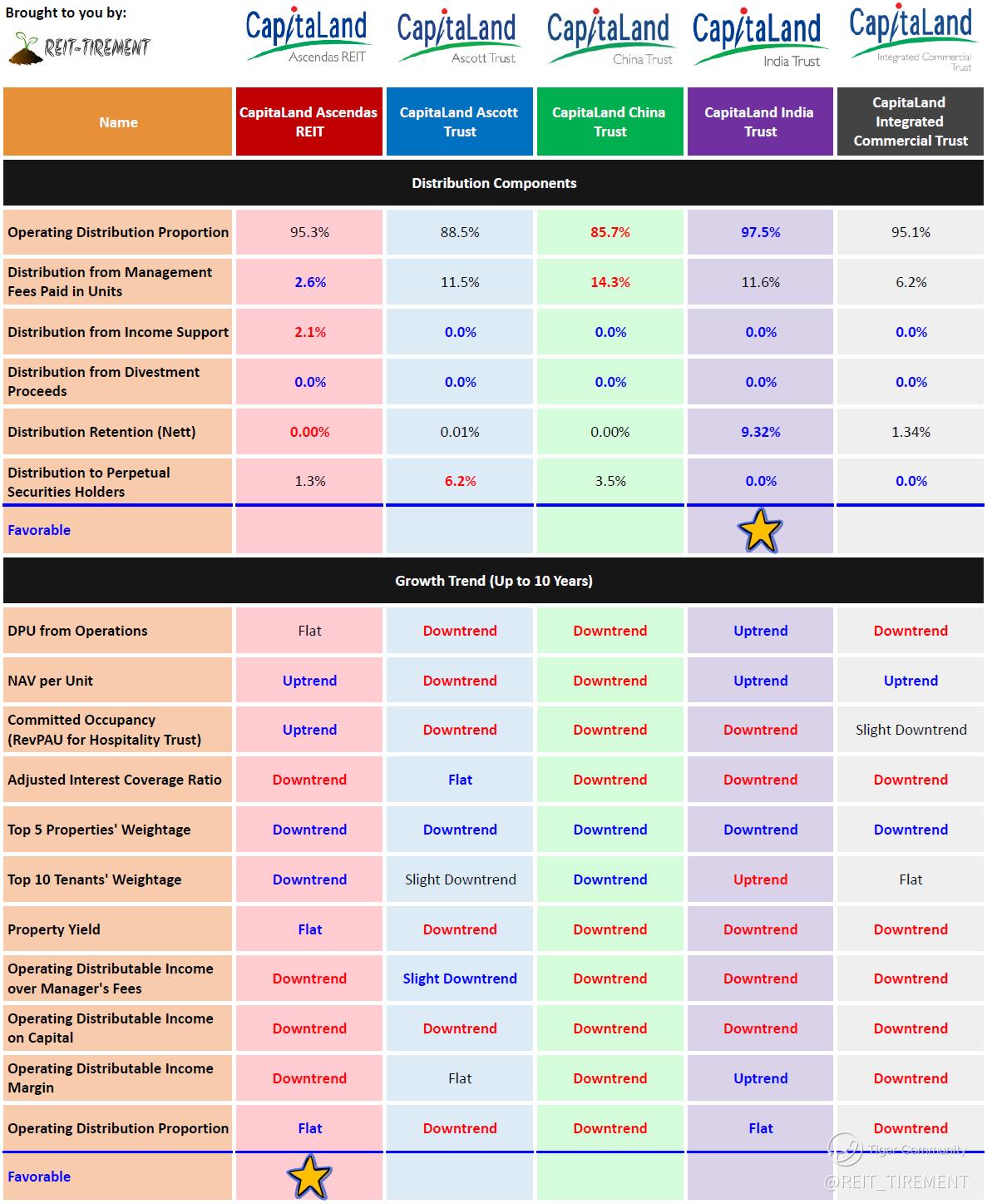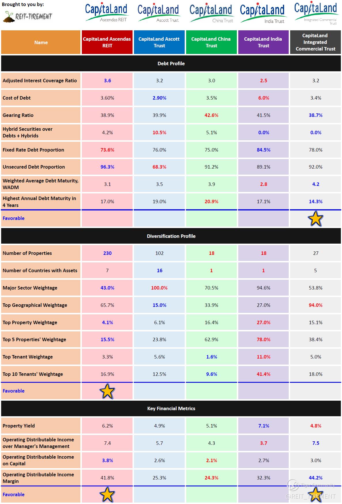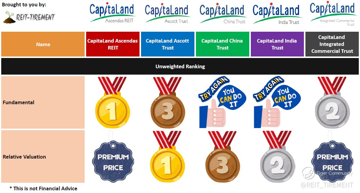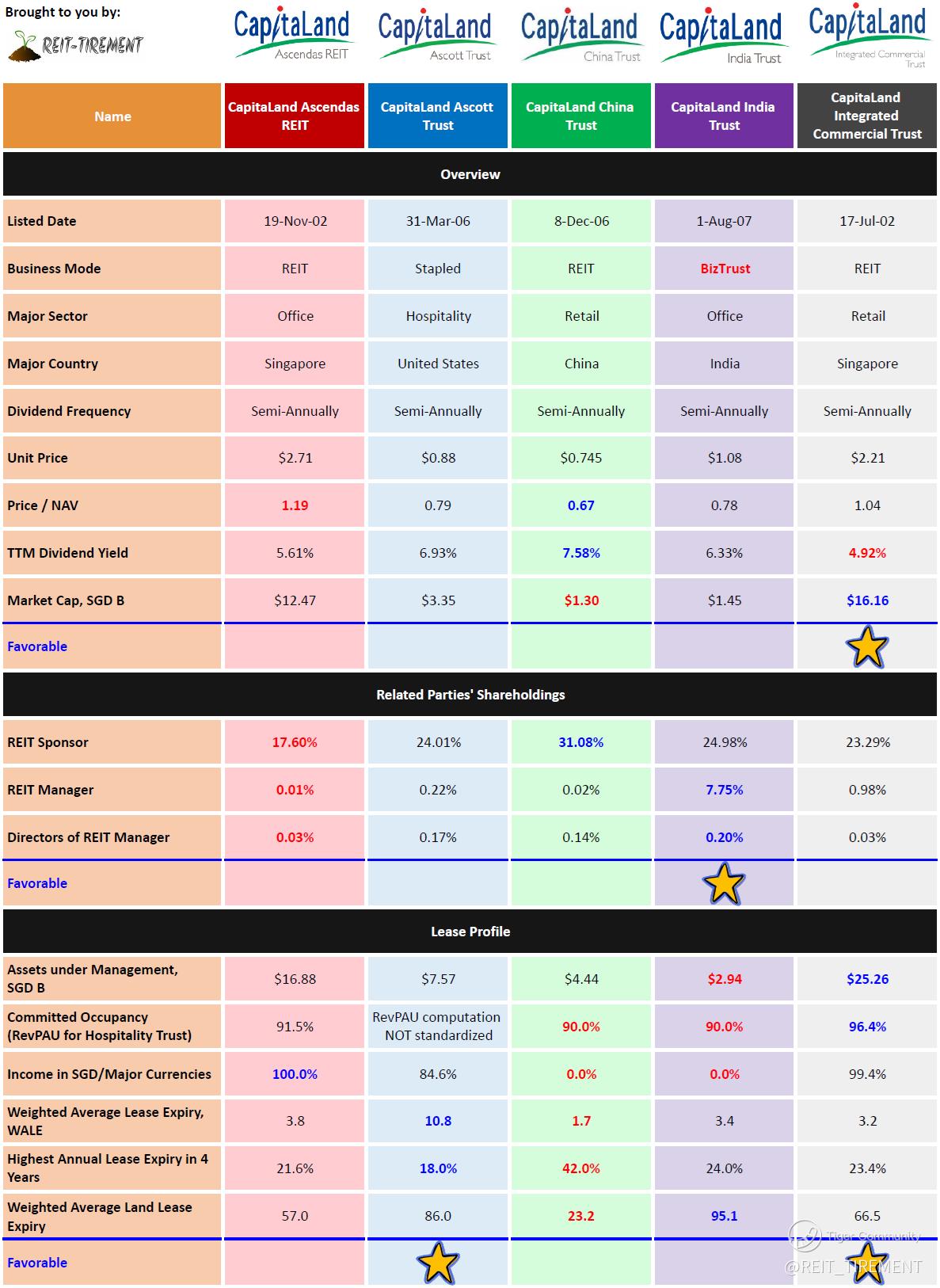 The above is just a quick comparison without weightage assigned. For more information, check out REIT-TIREMENT