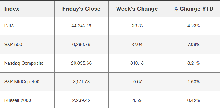 The S&P 500 Index and Nasdaq Composite Index reached new records during the week, supported by solid corporate earnings reports and generally favorable economic data. The small-cap Russell 2000 was also positive, while the Dow Jones Industrial Average and S&P Midcap 400 Index ended in negative territory.