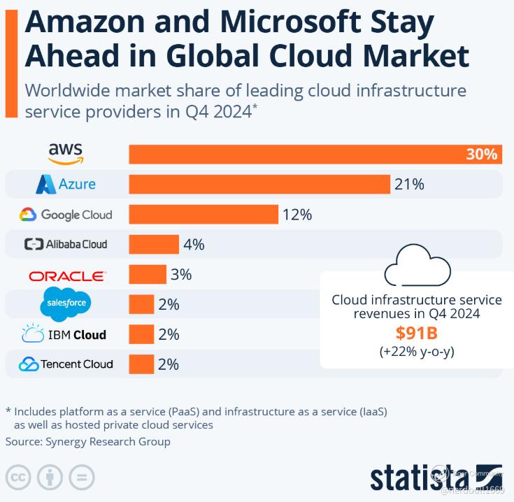 Investing over $100B in AI data centers to catch up. We need to understand that Microsoft Azure still holds the second position as of Q4 2024.