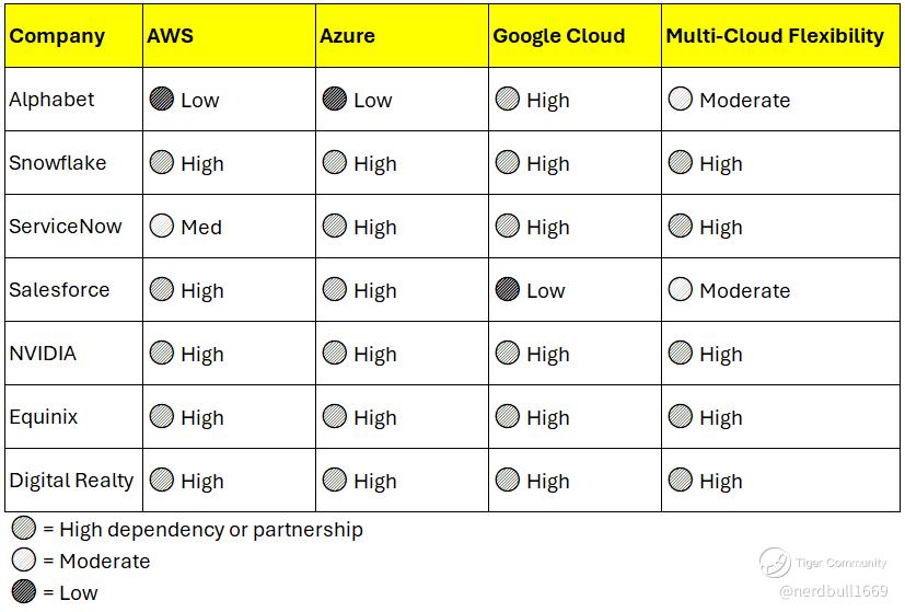 Partnerships: Track strategic cloud alliances (e.g., CME–Google, OpenAI–Microsoft).