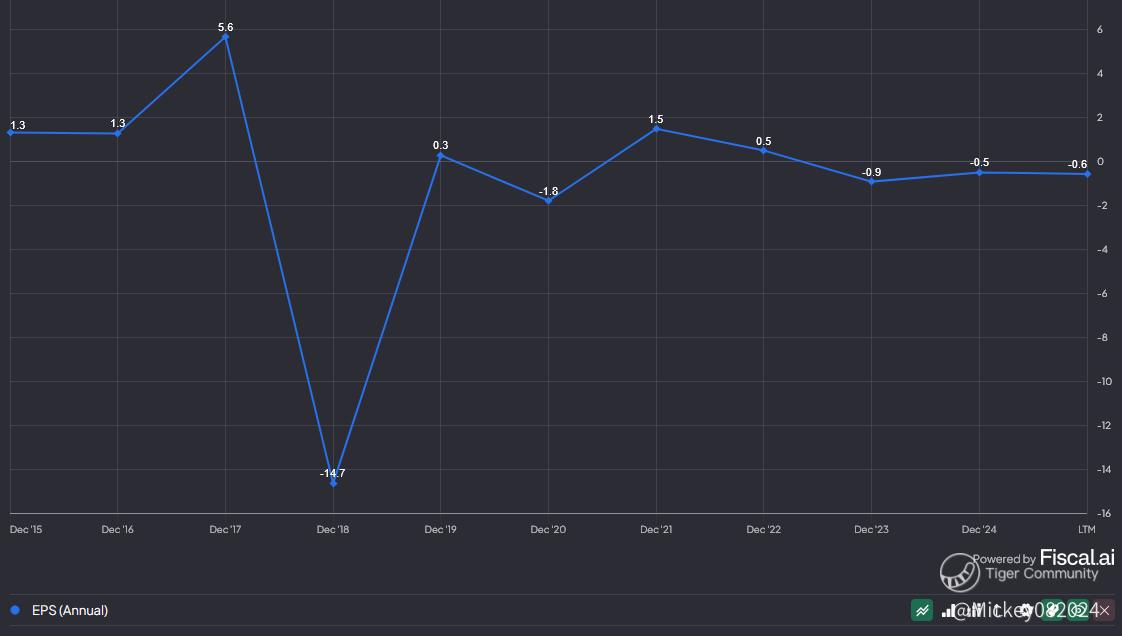 Management’s repeated restructuring efforts — including divestitures, cost-cutting, and debt reduction — have yet to restore investor confidence. As a result, Newell now trades at a price-to-sales ratio of less than 0.3x and a forward P/E under 7x, valuations that imply little to no growth ahead.