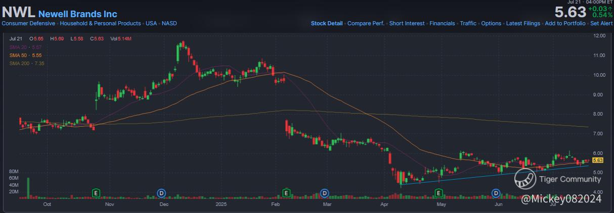 At under $7 per share, NWL trades at a forward P/E of about 6.8x and an EV/EBITDA multiple of less than 5x — valuations typically reserved for companies in distress. Yet, Newell is still profitable, generates cash, and commands strong brand recognition. If margins improve just modestly as Project Phoenix delivers, the stock could see meaningful upside from current depressed levels.