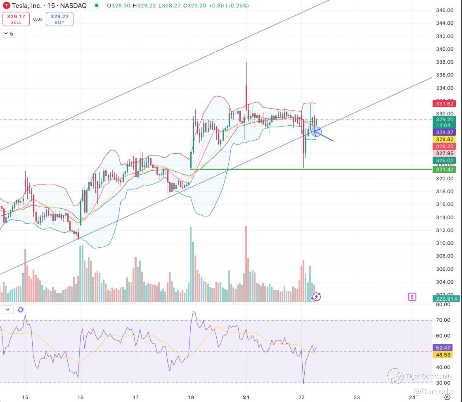 $TSLA is currently trading around $329.64, and the technicals are speaking clearly, but few are listening. Here’s what I’m watching as we head into earnings: