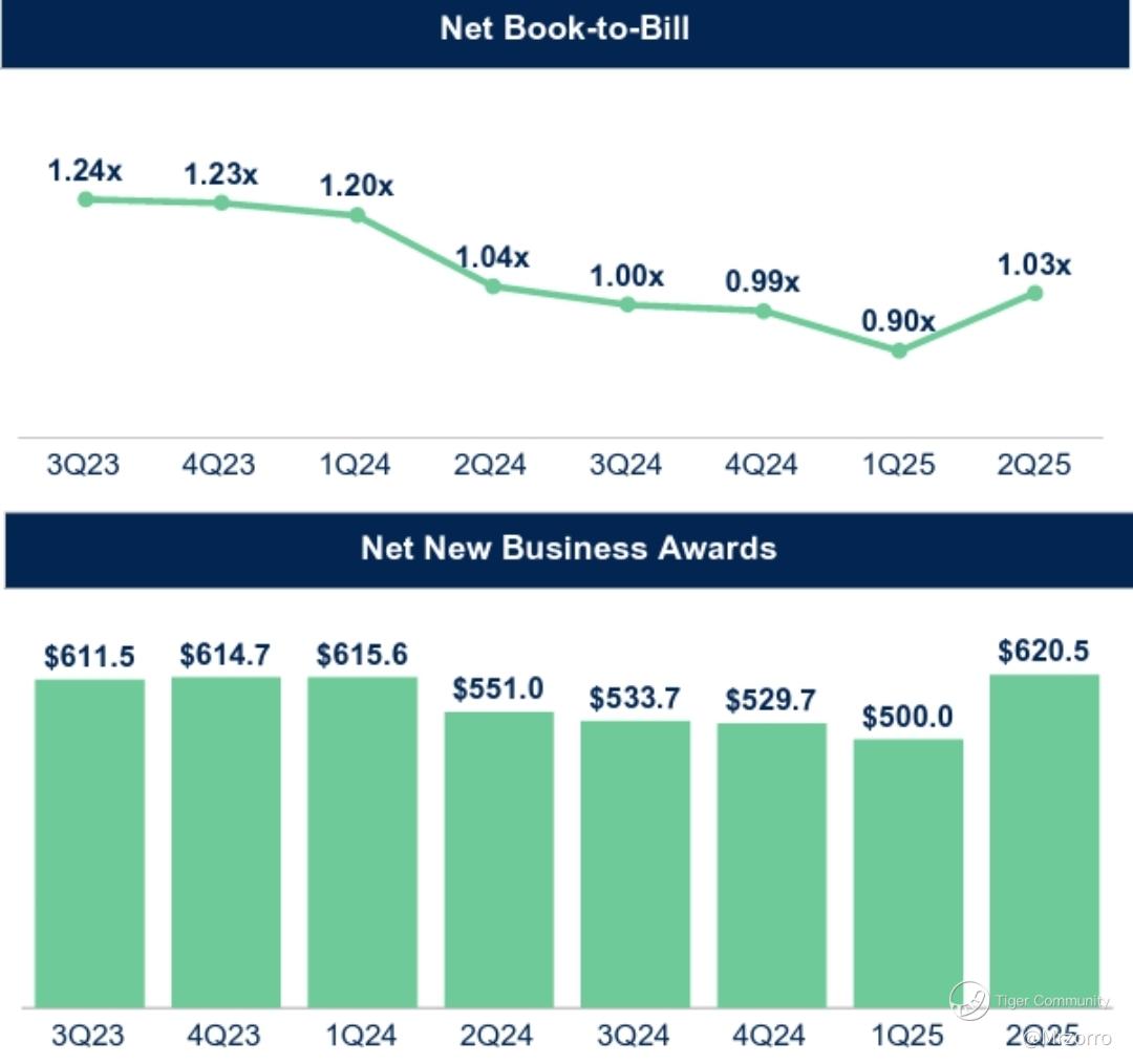 ~New business awards of $620.5 million, up 12.6% YoY, driving a net book-to-bill ratio of 1.03x, indicating continued strong booking capability outpacing revenue conversion