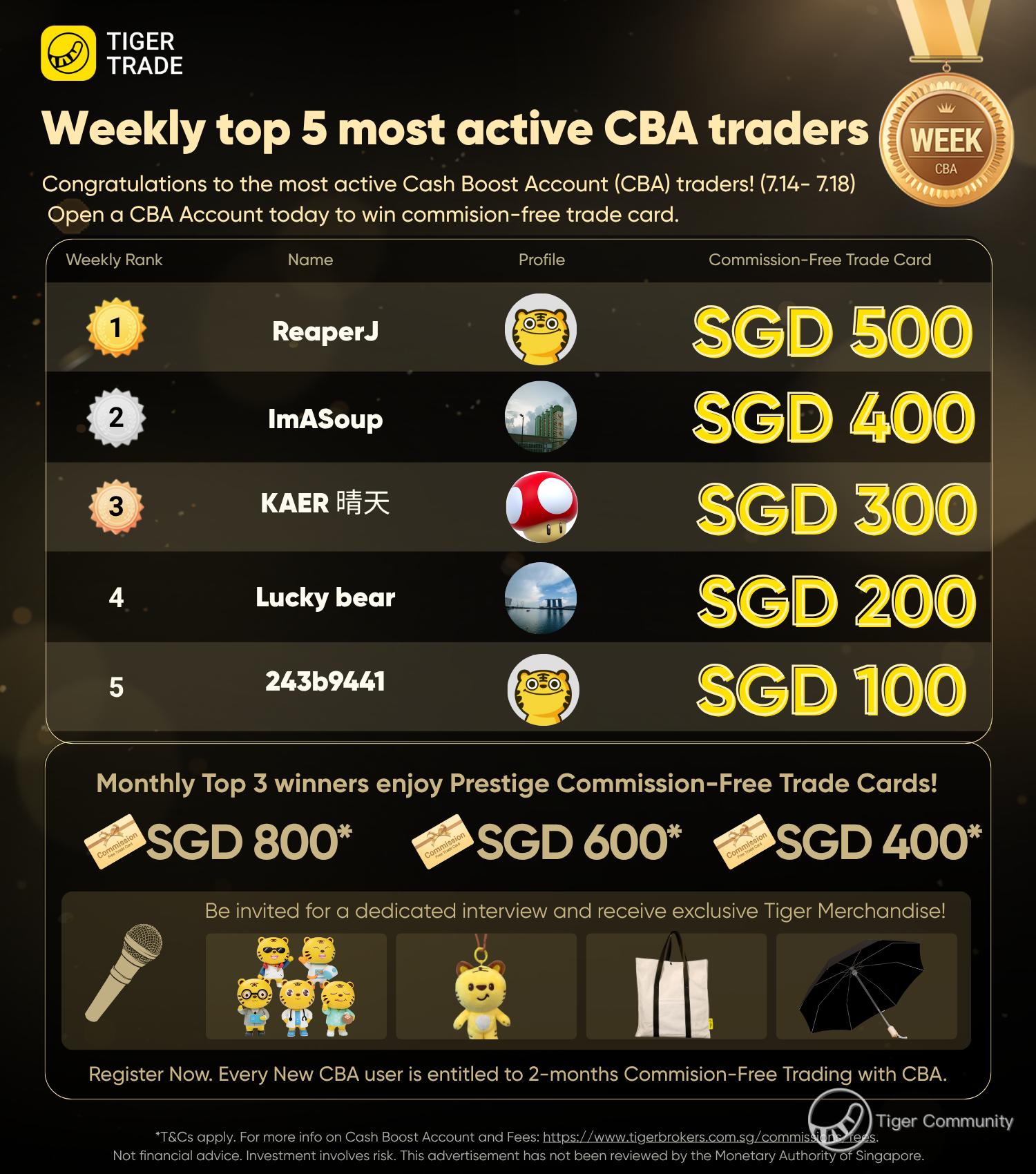 🎉🎉Here we present the top 5 most active/promising Cash Boost Account (CBA) traders for the week July 14th-July 18th!🎉🎉