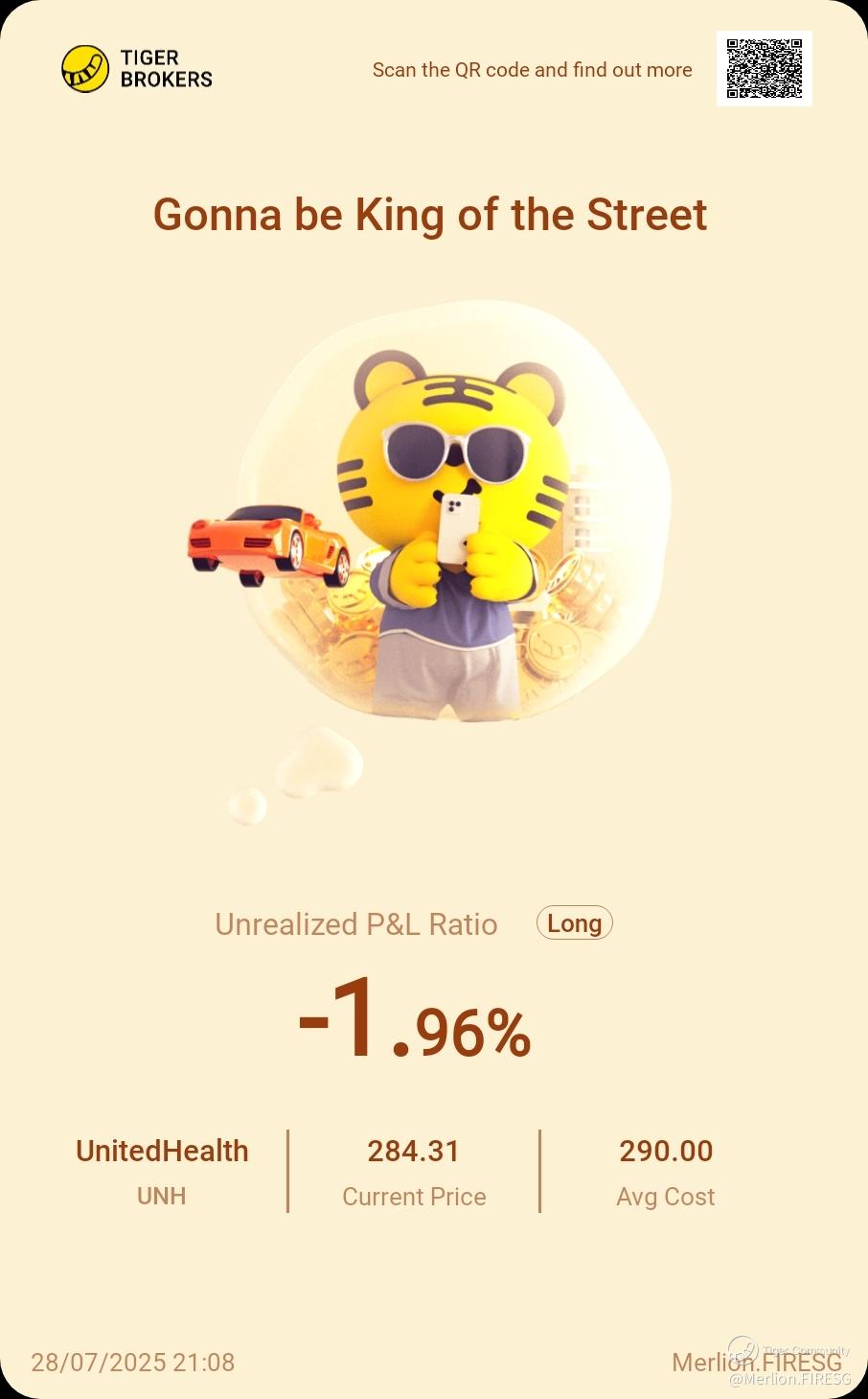 holding 600 shares of $UnitedHealth(UNH)$ @ 290, personally I find its a pretty okay level of entry, however earning report this week might really swing the stock +-7%