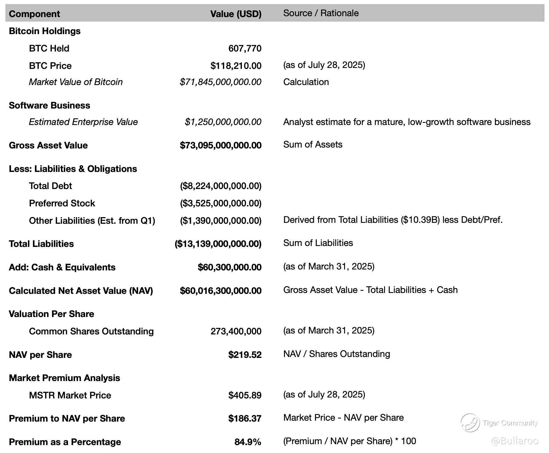 This analysis leads directly to an answer for the user's question regarding the weight of Bitcoin holdings in MSTR's valuation. The value of the Bitcoin holdings is foundational but ultimately insufficient to determine the stock's price. The stock's market value is best expressed as a function: Market Price = (NAV per Share) * (Premium Multiplier). Therefore, while the Bitcoin holdings anchor the NAV, it is the volatile and speculative premium multiplier that dictates the stock's day-to-day performance and carries the most significant risk for shareholders.