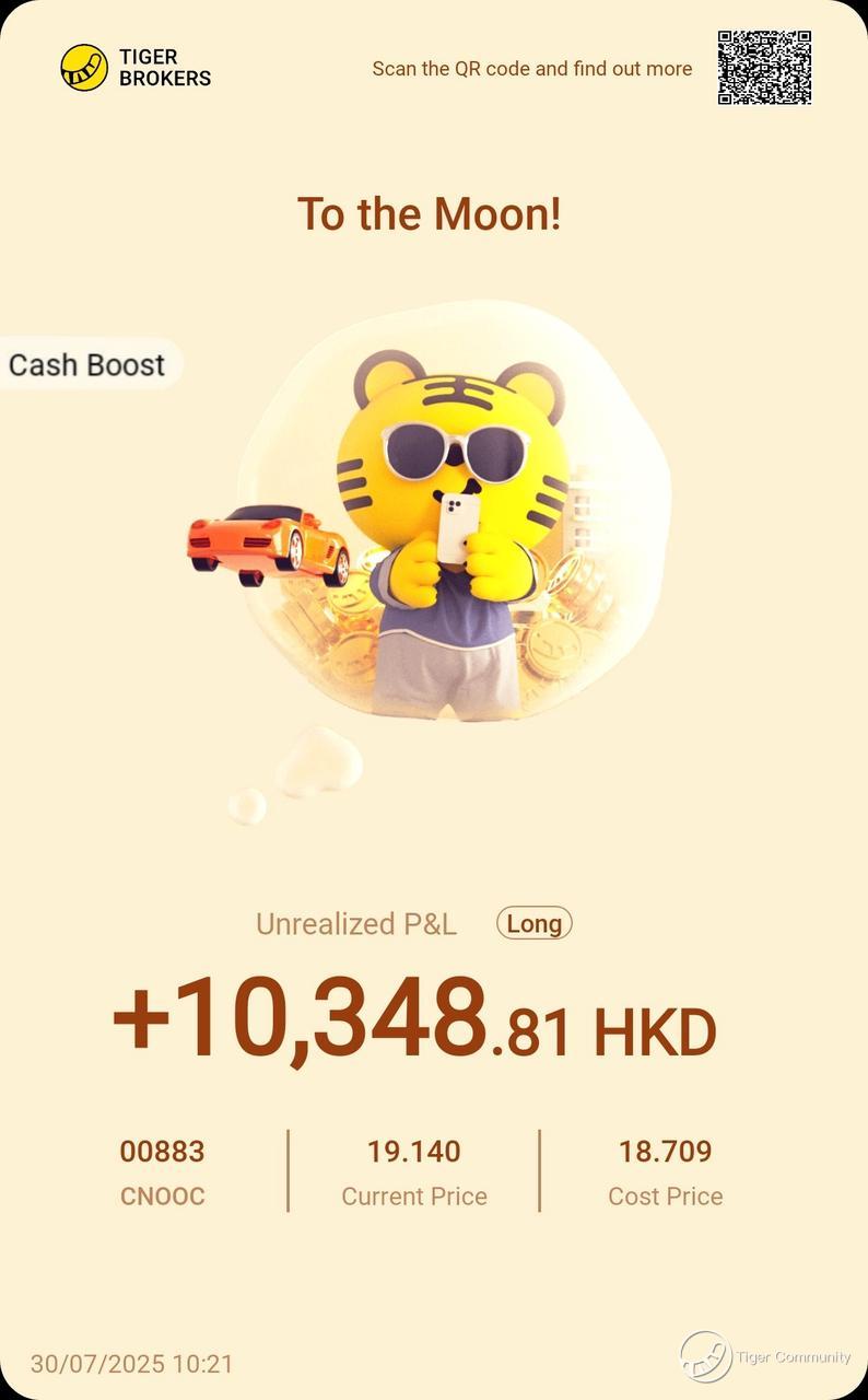 $CNOOC(00883)$ Bought more CNOOC on the dip, now seeing solid gains—proving my strategy right. With rising oil prices ahead, I remain confident in its growth potential.