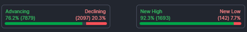 80% of stocks closed higher