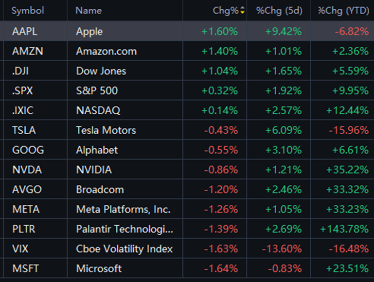 Of the BATMMAAN stocks Apple $Apple(AAPL)$ continued higher gaining 1.6% joined by Amazon $Amazon.com(AMZN)$ up 1.4%. The other six closed in the red Meta $Meta Platforms, Inc.(META)$ , Microsoft $Microsoft(MSFT)$ and Broadcom $Broadcom(AVGO)$ all more that 1% lower.