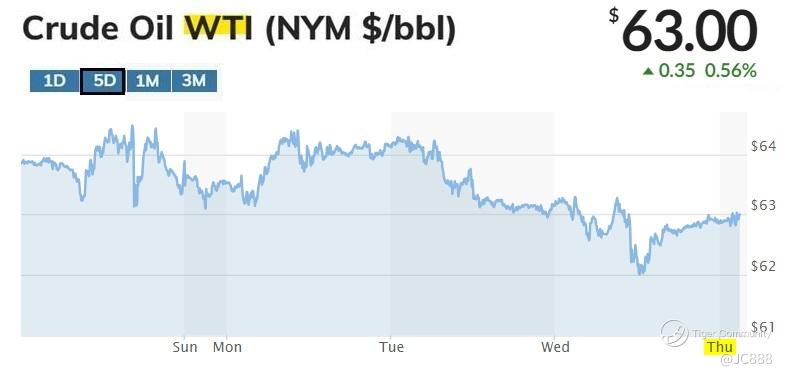 Its down to $63.00 a barrel, as of Thursday morning asia time, up marginally by +0.56% (see above)