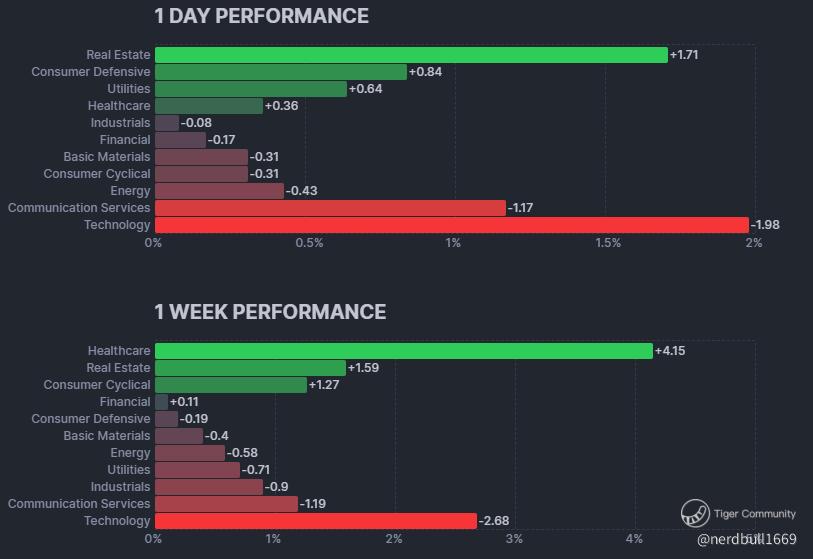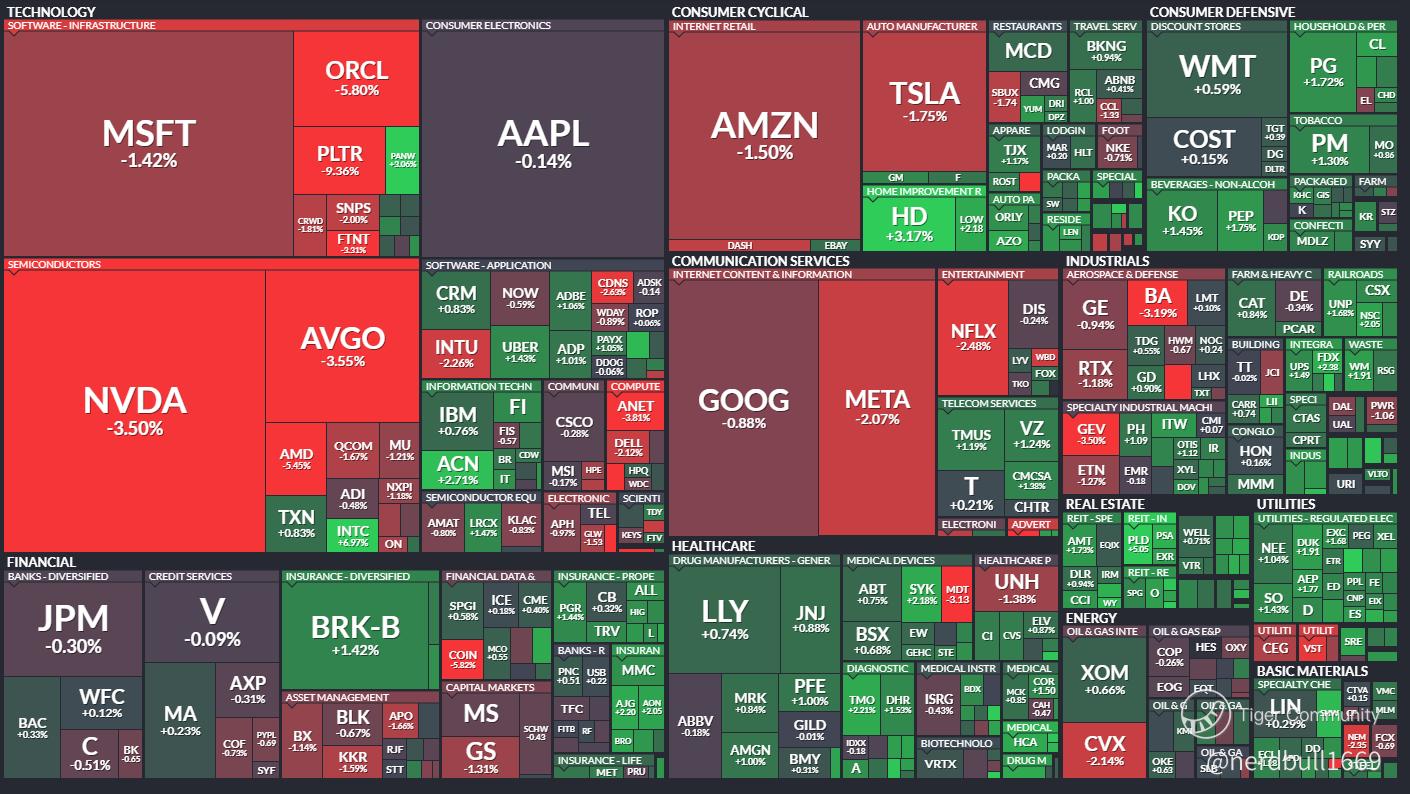 We can see that Communication Service and Technology sectors which consists of those big tech names like $Amazon.com(AMZN)$, Nvidia (NVDA), Broadcom (AVGO) and Advanced Micro Devices (AMD) have suffered significant decline.