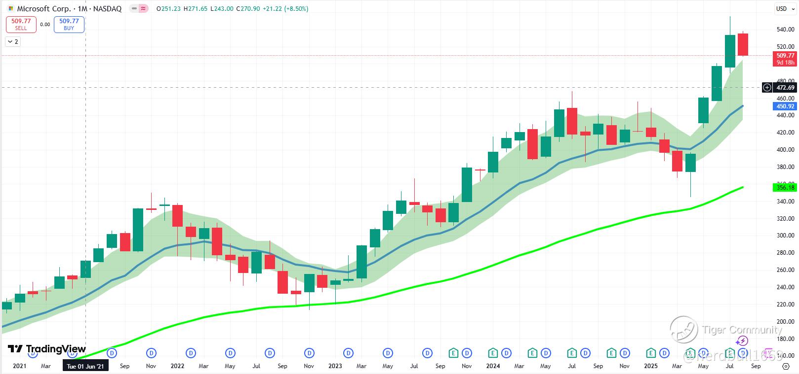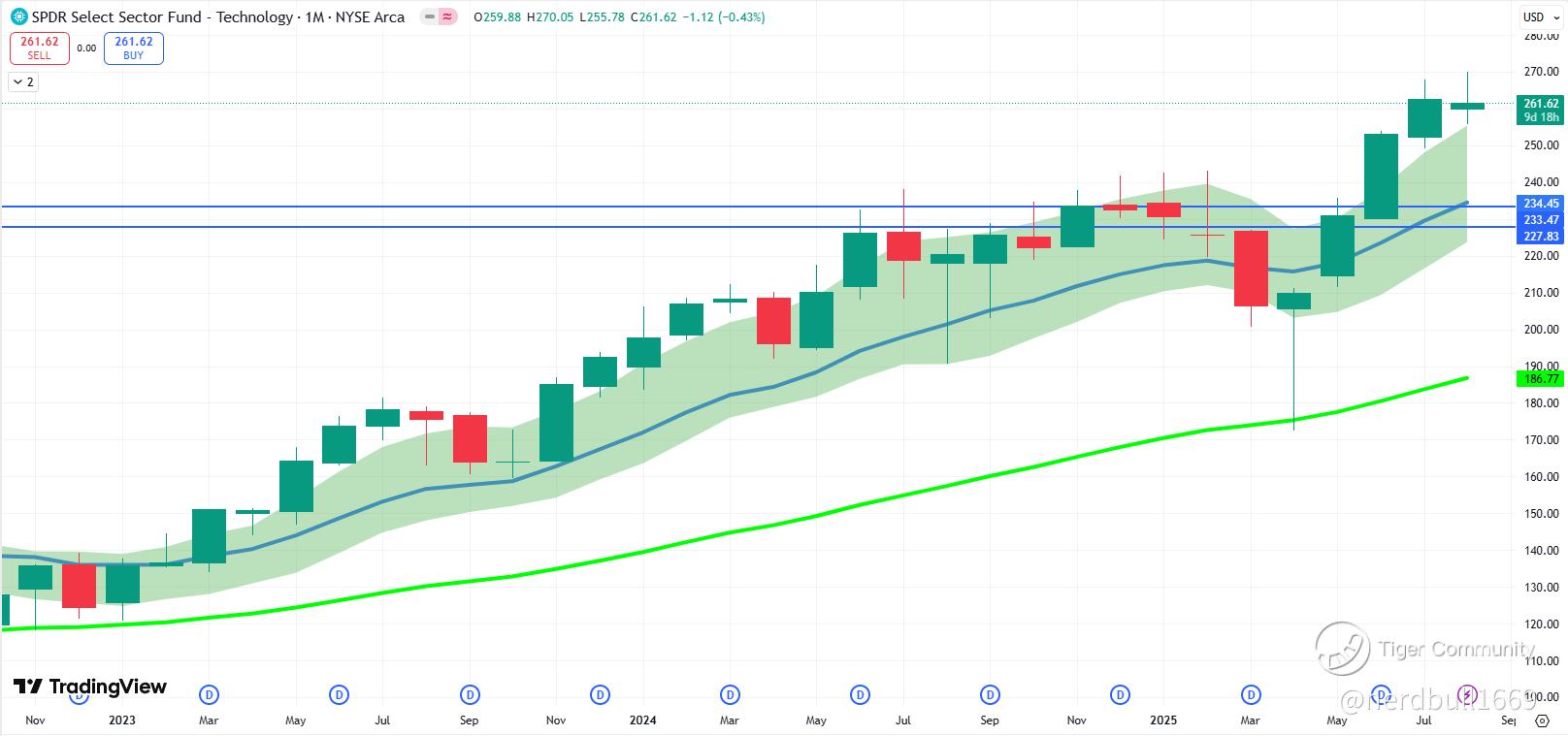 One of the things that I can share is the infamous 12 EMA on the monthly timeframe, as you can see one example above for Microsoft. Now I will show you why $Technology Select Sector SPDR Fund(XLK)$ have such a significant decline.