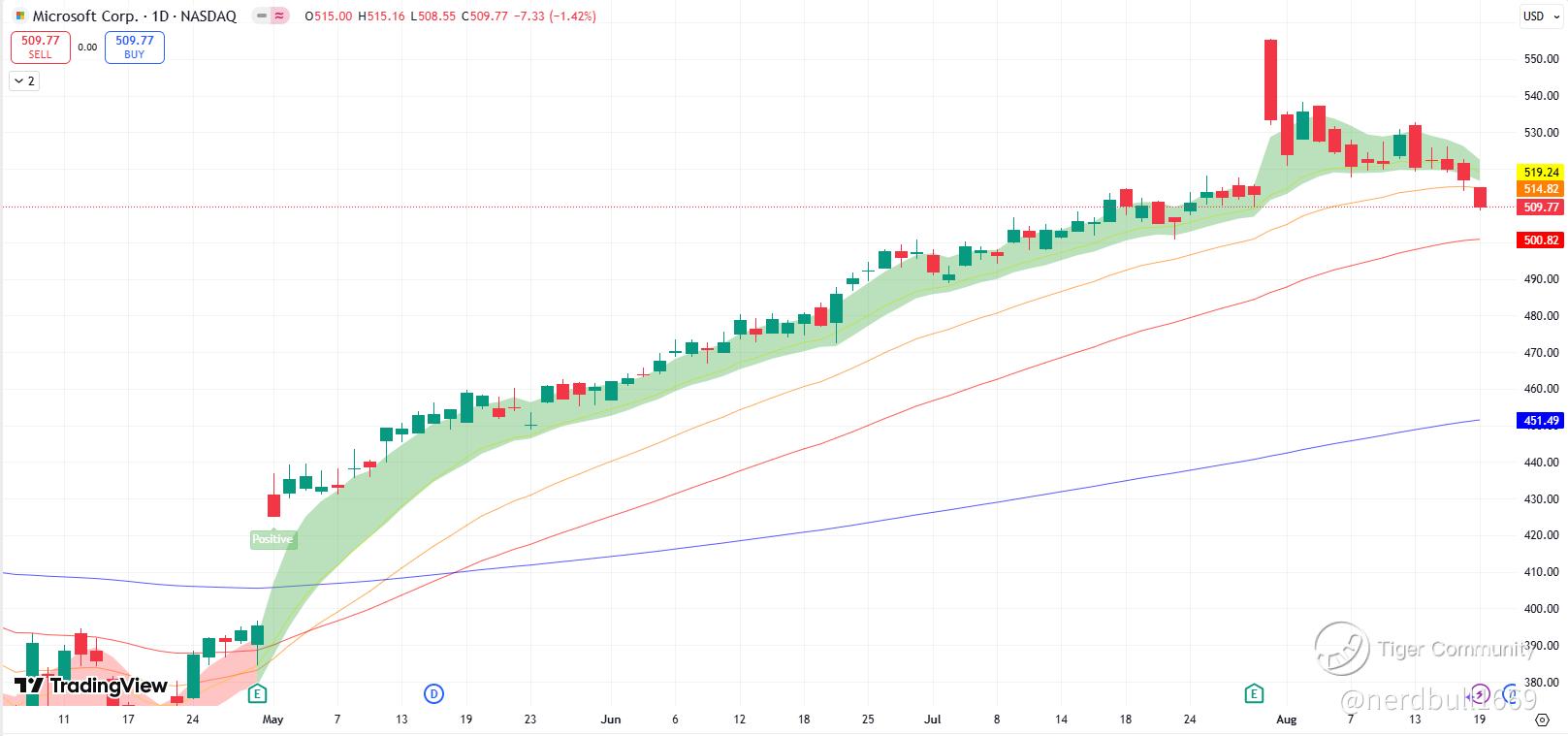 One of the stocks which have been doing pretty well is $Microsoft(MSFT)$, if you looked solely at the daily chart, you can see that it have good positive momentum, and also the bulls are in good control and are making daily uptrend continuation from July into August.