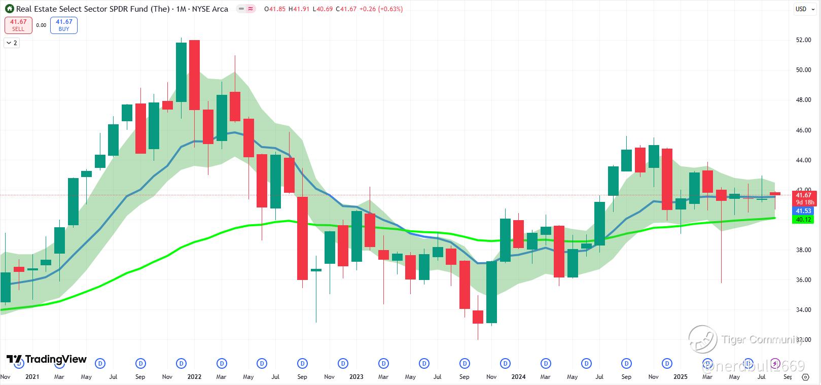 Now we moved onto another sector, $Real Estate Select Sector SPDR Fund(XLRE)$ where we are seeing real estate names having a pretty good day which helped to keep the S&P 500 within any significant decline. You can see that XLRE is not trading far away from the 12-EMA, and it is trading near the 12-EMA level.