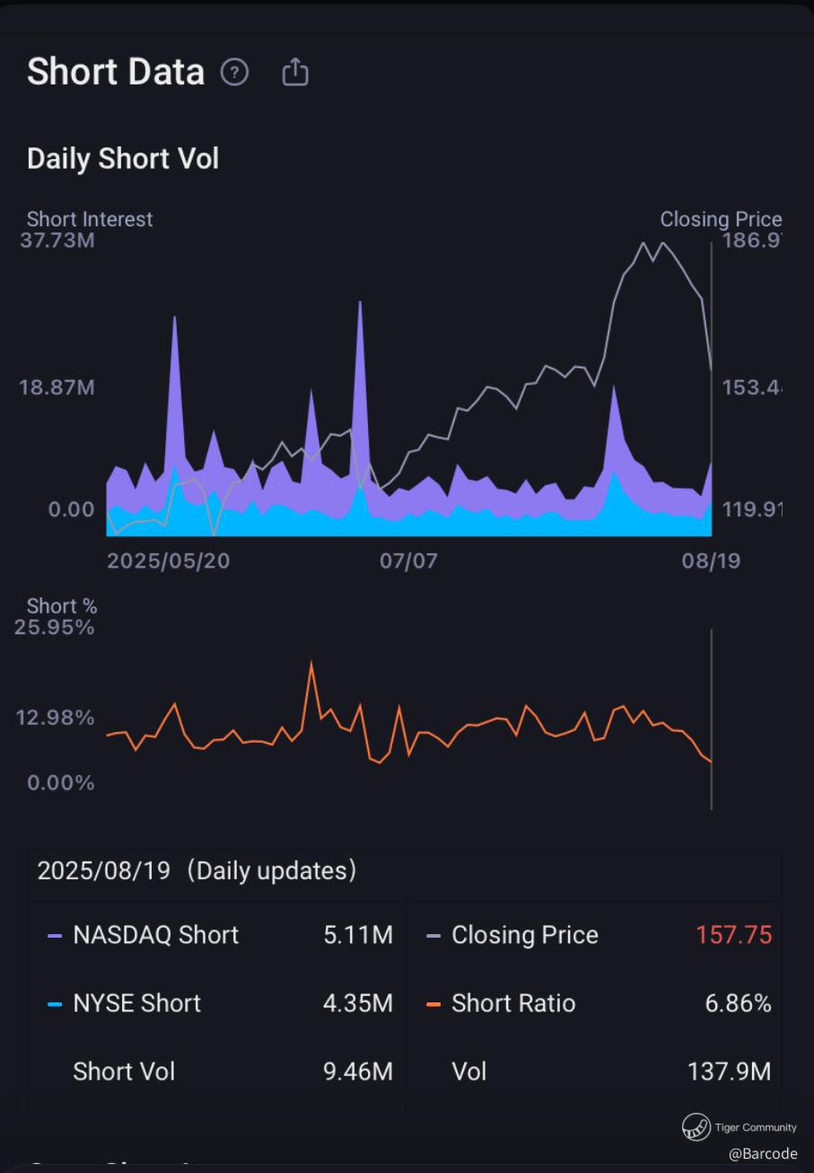 • Short data: daily short vol 9.46M; short ratio 6.86; short interest 37.73M; Days to Cover 1.00