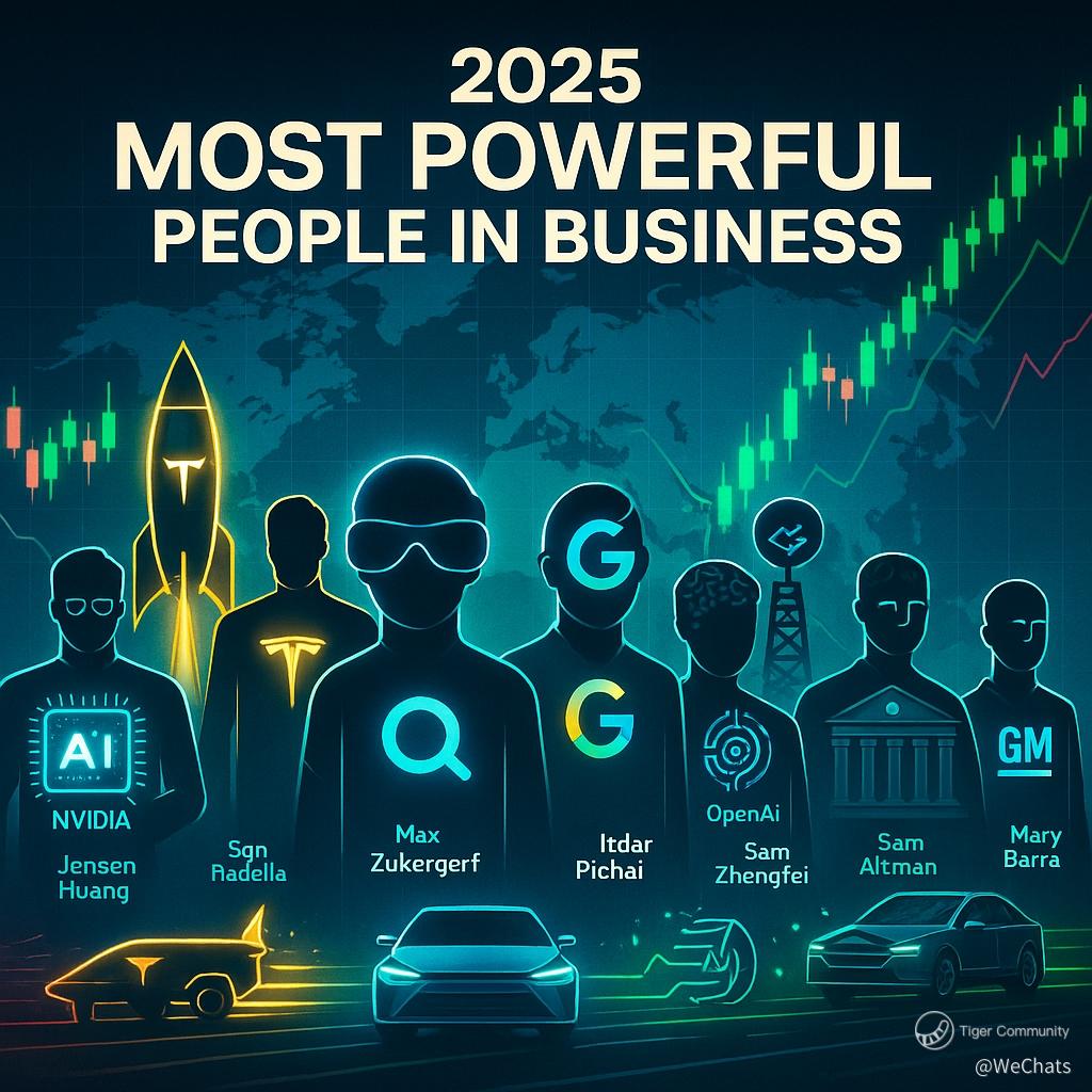 Every year, lists like the “Most Powerful People” spark global debate. This year’s lineup is stacked with familiar names — Jensen Huang (NVIDIA 🚀), Satya Nadella (Microsoft), Mark Zuckerberg (Meta), Elon Musk (Tesla), Sundar Pichai (Alphabet), Wang Chuanfu (BYD), Ren Zhengfei (Huawei), Sam Altman (OpenAI), Jamie Dimon (JPMorgan Chase), and Mary Barra (GM). For investors, the natural question is: does “power” translate into profit? Or is chasing headlines just another form of FOMO?