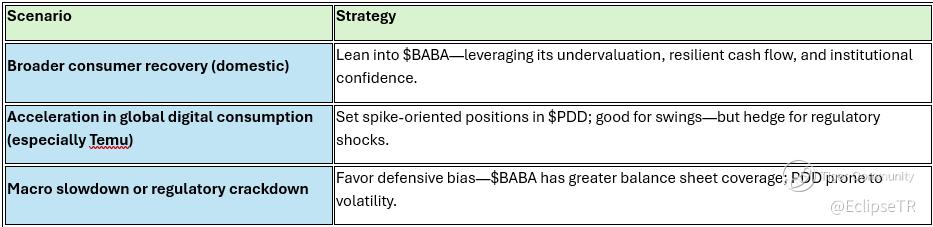 • $PDD: Consider buying out-of-the-money calls for asymmetric upside if Temu news remains favorable, OR place tight stop-losses to limit drawdown if rhetoric shifts.
